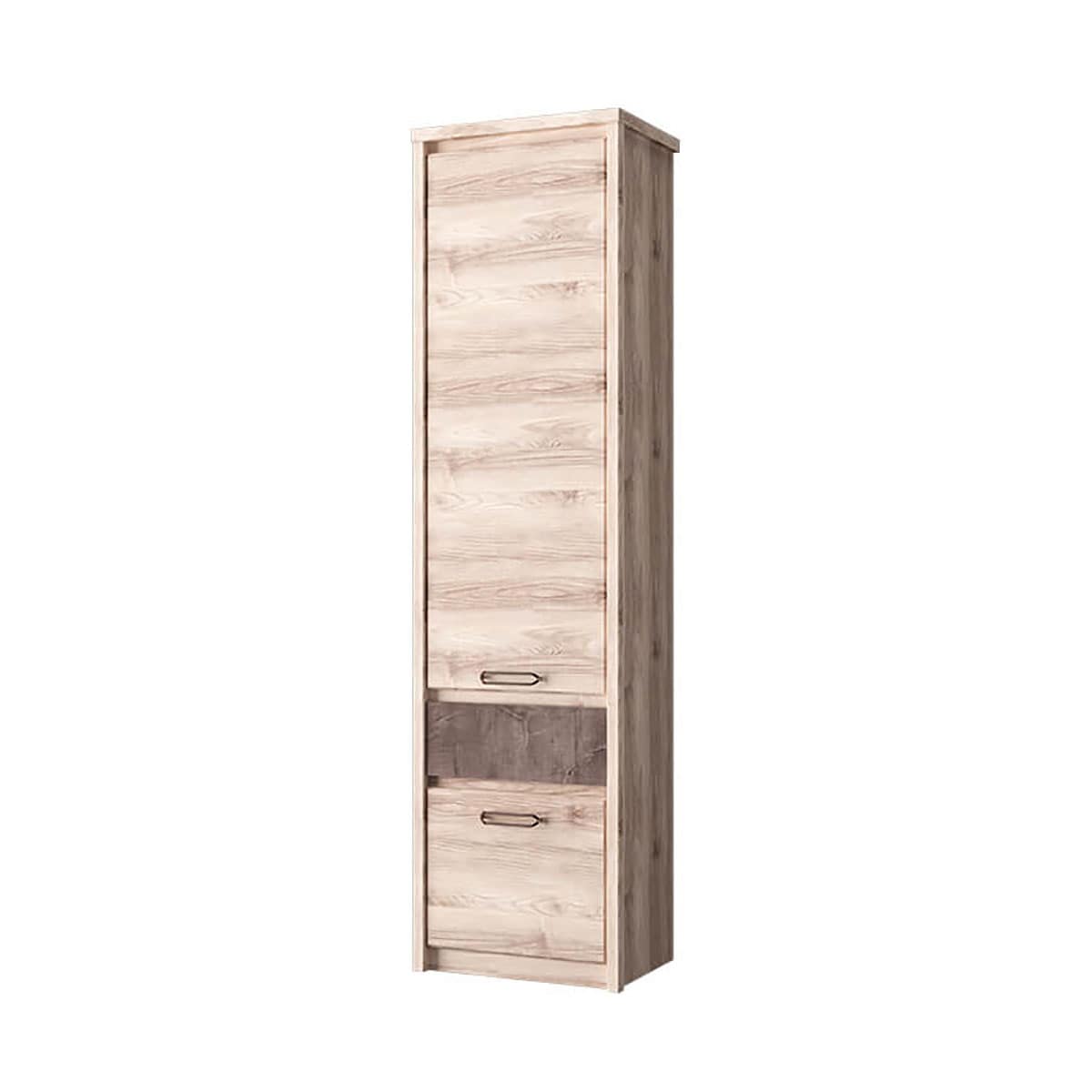 Шкаф 2D1S JAZZ – универсальный предмет мебели, который оформит привлекательный интерьер и молодёжной комнаты, и гостиной, а также спальни (например, в сочетание с угловым шкафом 2D). Модуль организует компактное хранение белья, предметов одежды, учебных принадлежностей и других вещей. Конструкция элемента представляет собой одно отделение с полками из ЛДСП за глухой дверью, одну вместительную нишу за глухой дверью, один выдвижной ящик (1S). Двери распашные, крепятся на петли к боковому корпусу.