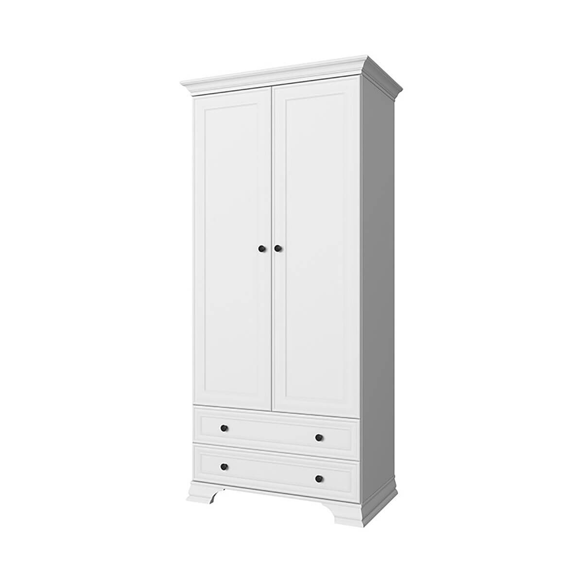 Шкаф 2DG2S TIFFANY Белый прекрасно подойдёт для оформления спальни, молодёжной, гостиной и прихожей. Конструкция шкафа 2DG2S TIFFANY Белый прямая, представляет собой одно гардеробное отделение с полкой и стационарной продольной штангой за двумя глухими дверями, два выдвижных ящика (2S). Сверху расположена ниша для хранения головных уборов, предметов быта и других вещей. Двери (2D) распашные, крепятся на петли к боковому корпусу изделия.