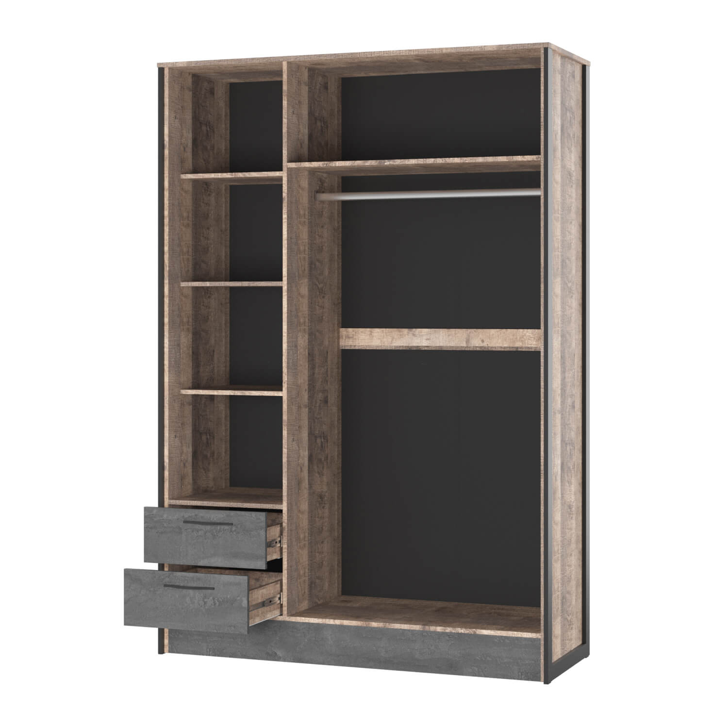 Шкаф выполнен из качественного ЛДСП толщиной 16 мм, что обеспечивает его долговечность и надежность. Цвет шкафа - дуб гранж/железный камень, который прекрасно сочетается с различными стилями интерьера.