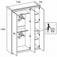 Шкаф 3DG JAZZ – обновленная модель трёхдверного шкафа. Шкаф 3DG имеет прямую конструкцию. Конструкция элемента представляет собой одно гардеробное отделение за двумя глухими дверями, одно отделение с полками ЛДСП за одной дверью. Двери распашные, крепятся на петли к боковому корпусу и внутренней перегородке. Особенностью элемента является увеличенная высота – 2300 мм и ширина – 1568 мм.