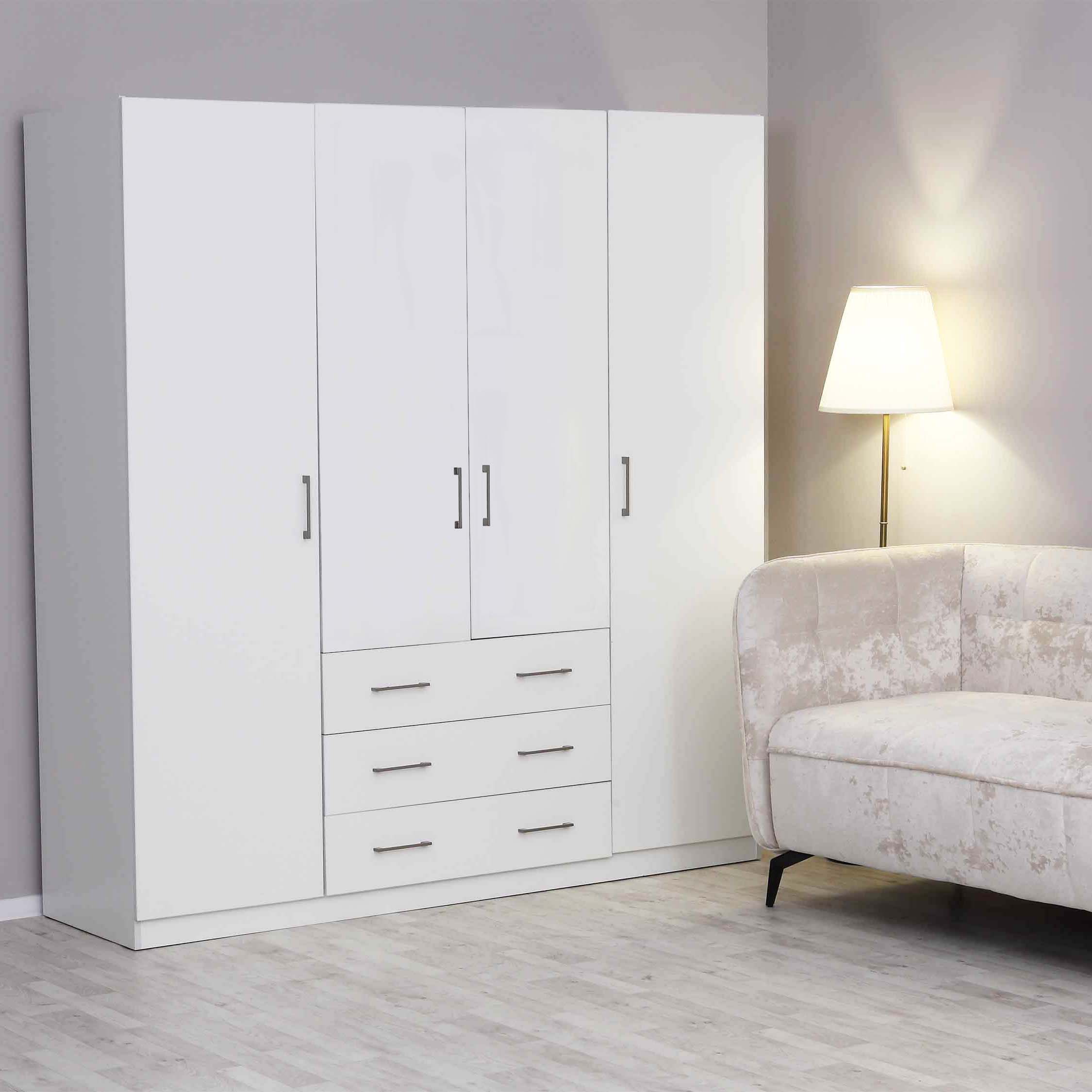 Шкаф "Элегия" — это элегантный четырёхдверный шкаф, который станет отличным дополнением к любому интерьеру. Он выполнен из высококачественных материалов и обладает современным дизайном. Внутри шкафа расположены удобные полки и штанги для хранения одежды, что позволяет оптимизировать использование пространства.