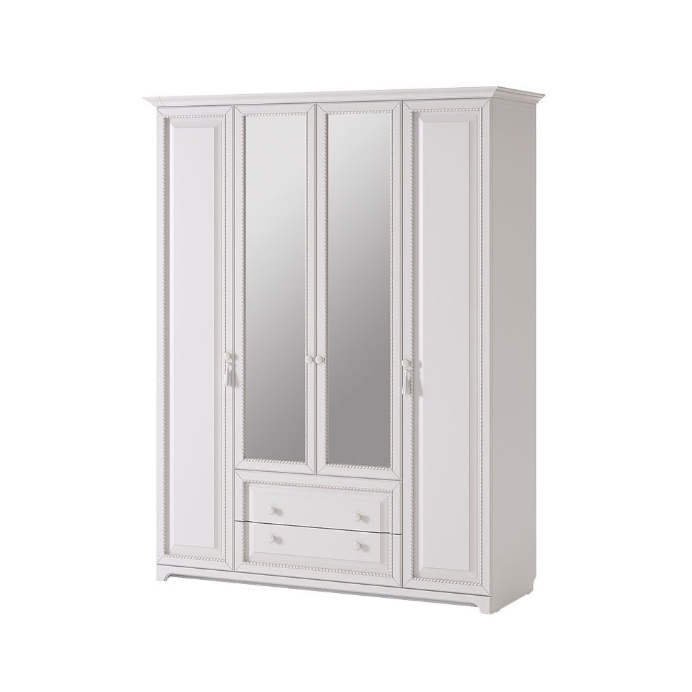 Нет ничего лучше, чем сочетание красоты и практичности. 4-створчатый шкаф «Белла» тому доказательство. Фасады шкафа выполнены в нежном оттенке джелато, дверцы украшены фрезеровкой, а ручки – декоративными кистями. Центральный отсек шкафа оснащен круглой штангой для одежды, а боковые – полками. Выдвижные ящики прекрасно подойдут для хранения вещей.
