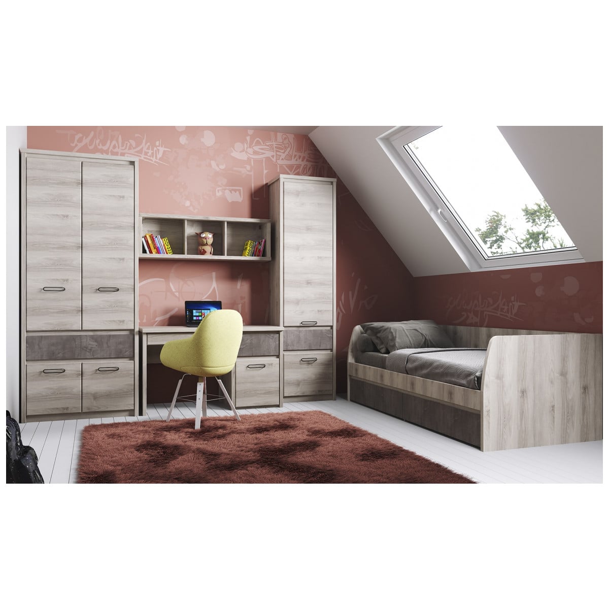 Шкаф 4DG1S JAZZ – элемент для организации хранения в молодёжной, прихожей, гостиной, и даже в спальне. Шкаф 4DG1S имеет прямую конструкцию. Конструкция элемента представляет собой одно гардеробное отделение со стационарной штангой и полкой за двумя глухими, один выдвижной ящик (1S), ниша за двумя глухими дверями.