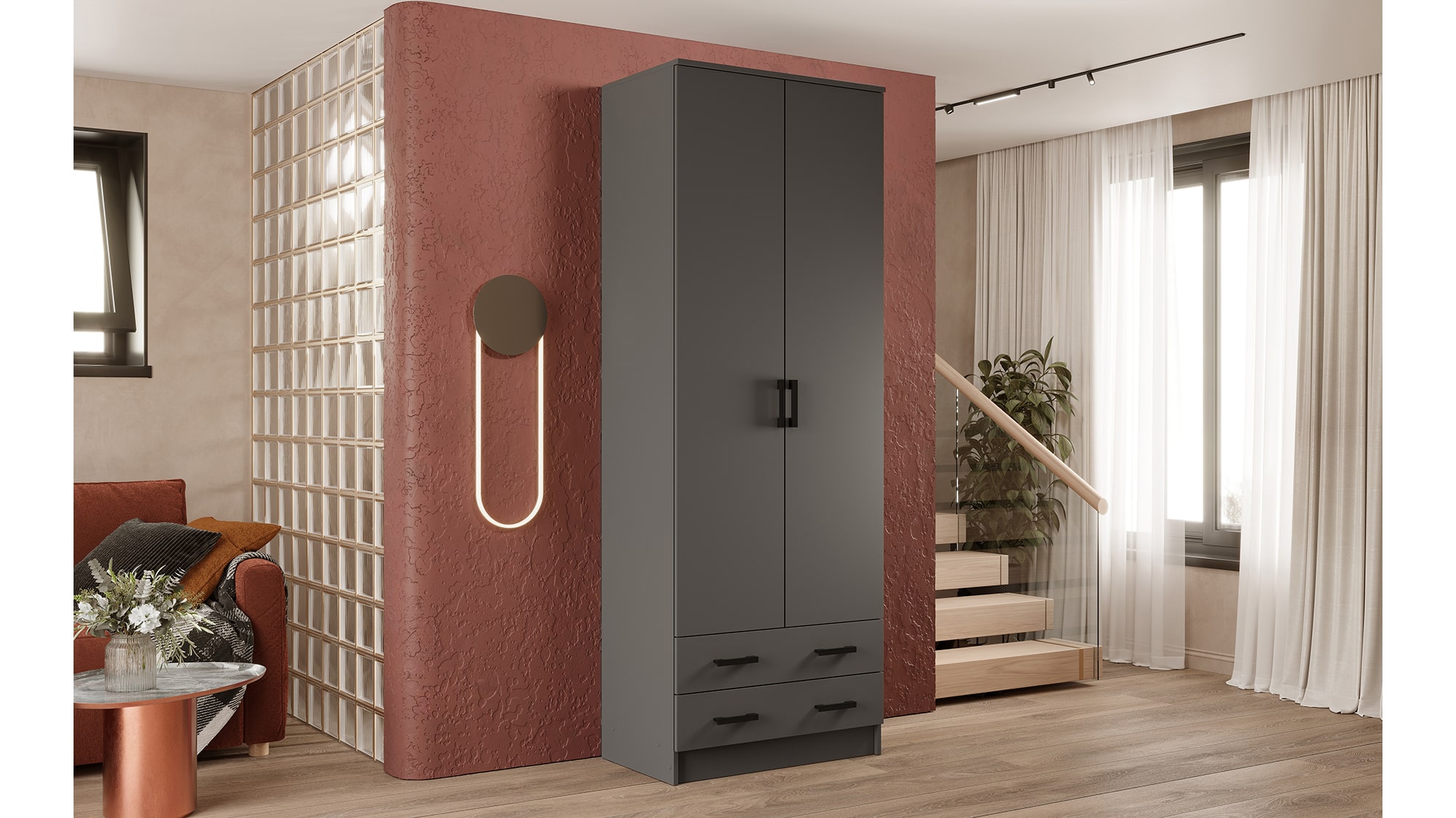 Шкаф Дуэт имеет современный стиль, который легко впишется в интерьер любой комнаты - будь то прихожая, спальня, гостиная или детская.
