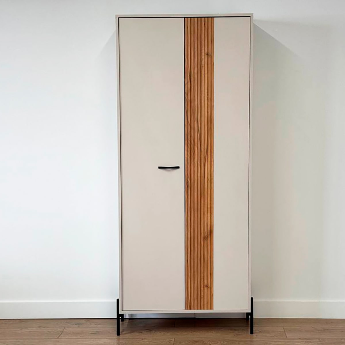 Особый шарм шкафу придает декоративный элемент цвета дуб крафт золотой на одной из дверей, добавляя нотку роскоши и уникальности.