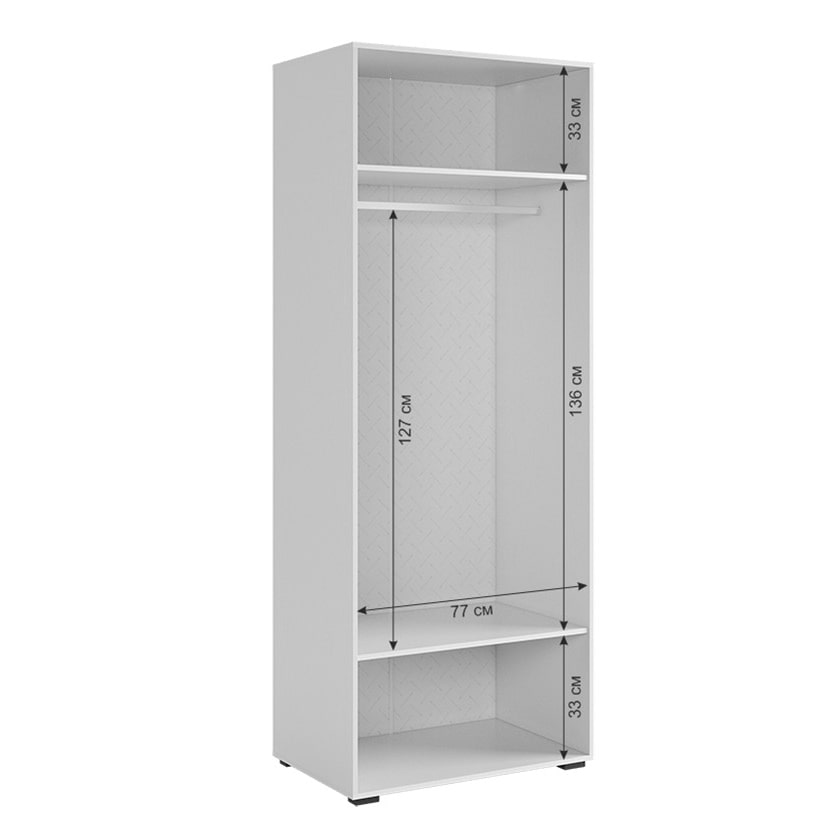 Что делает этот шкаф особенным? Его корпус изготовлен из лдсп белого дерева, что придает ему легкость и свежий вид. Фасады, выполненные из мдф и облицованные пленкой пвх белого матового цвета, добавляют шкафу элегантности. Уникальной особенностью дизайна являются вертикальные полосы на фасаде, созданные с помощью фрезеровки. Петли с доводчиком гарантируют бесшумное закрывание фасадов, залог вашего комфорта. Удобные металлические ручки облегчают открывание и закрывание шкафа, а штанга для одежды и полки дополнительно обеспечивают удобное размещение и организацию внутреннего пространства. Ножка пластиковая черного цвета дополняет общую композицию, а ее высота в 20мм придает шкафу легкость и стабильность.