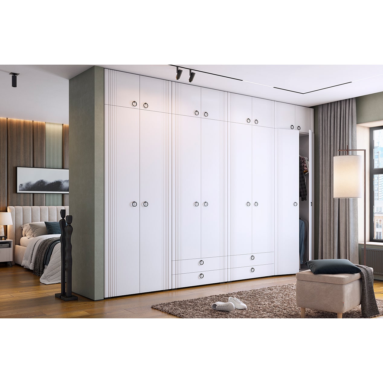 - Фрезеровка на фасаде в виде вертикальных полос создает изысканный акцент и добавляет шарма к общему дизайну.