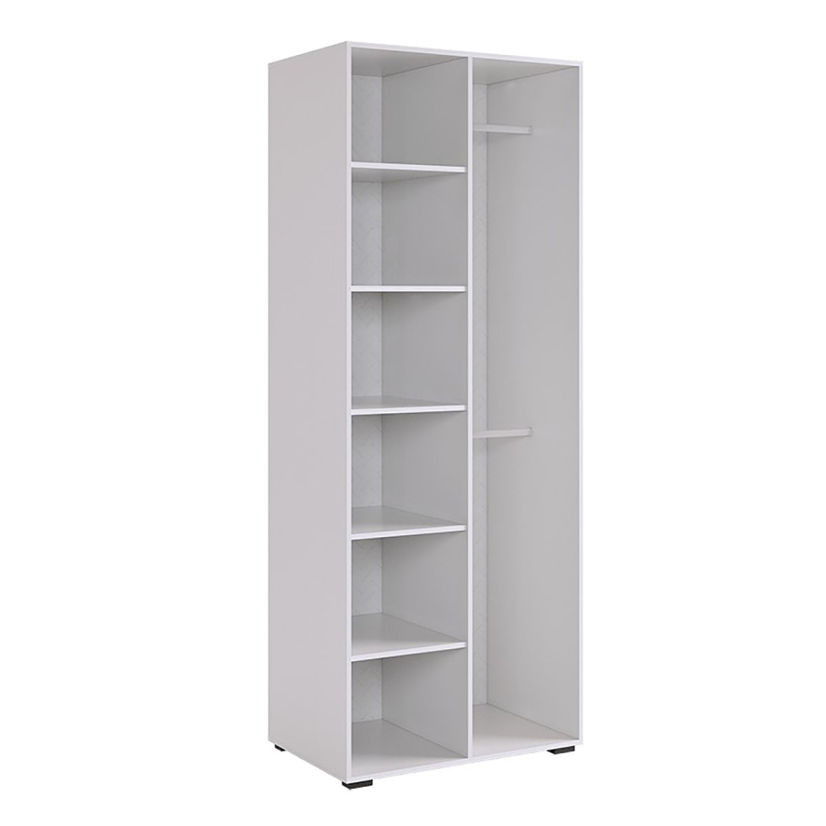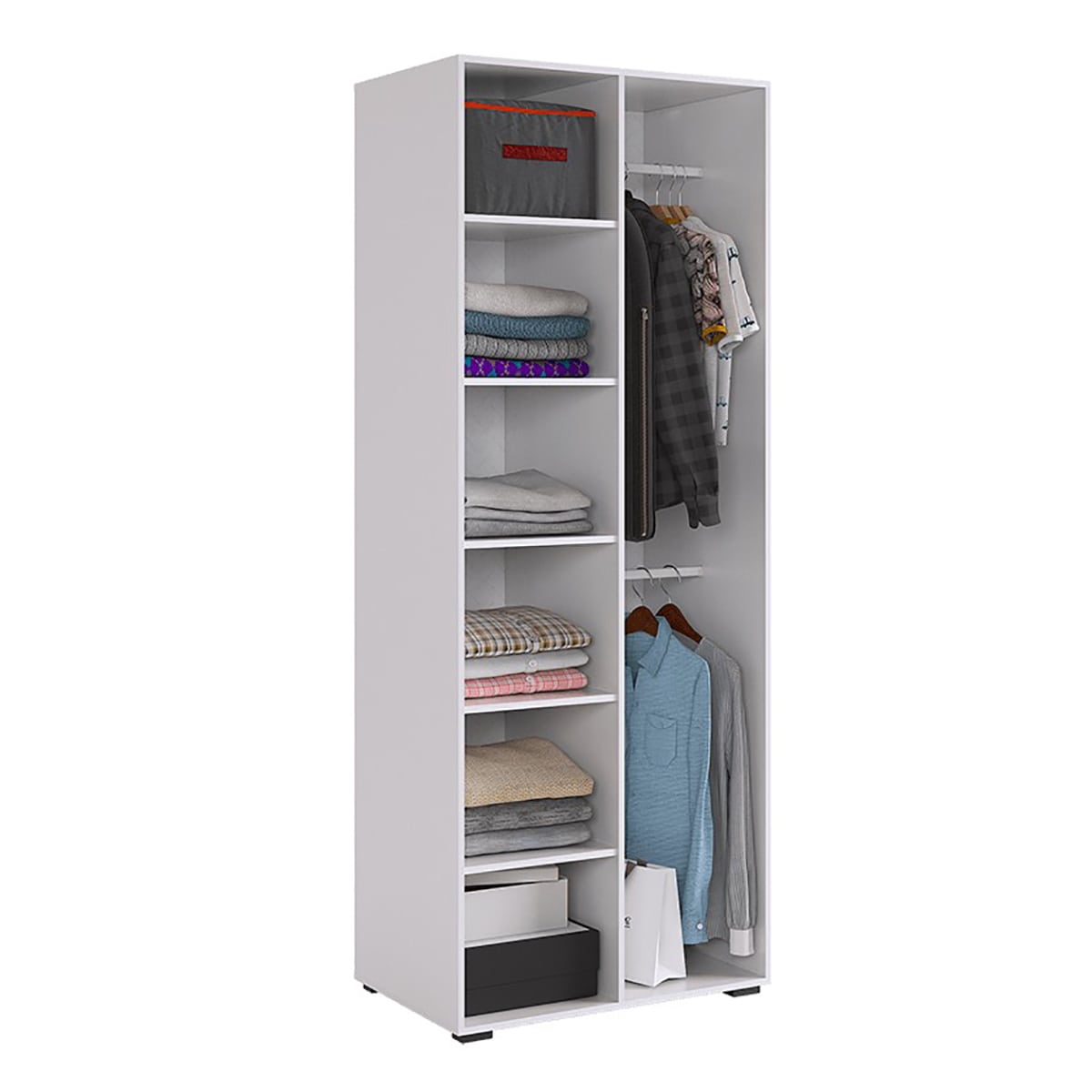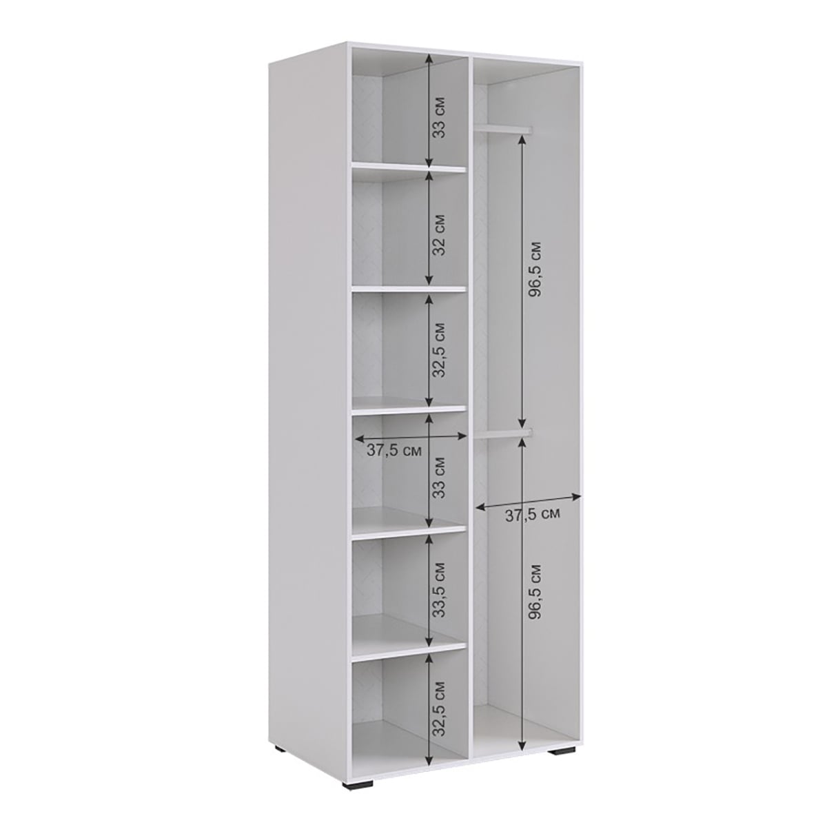 Шкаф "Ева" имеет две секции: одну с двумя штангами для одежды и вторую с пятью полками. Это позволяет удобно организовать вашу одежду, обувь и другие предметы. Этот шкаф обеспечит идеальный порядок в вашей комнате и позволит экономить место.