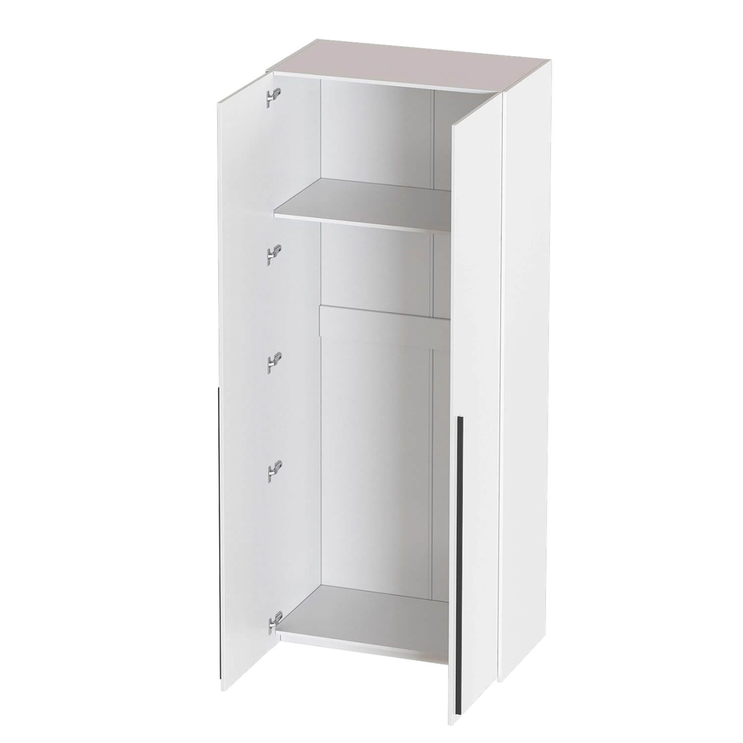Конструкция шкафа включает в себя проходные боковины, между которыми размещены стационарная полка, две съемные полки и цокольная коробка. Под стационарной полкой находится продольная металлическая штанга. Для усиления жесткости шкафа установлены два щита: один посередине боковины, а другой — под стационарной полкой. Шкаф оснащен накладными петлями с амортизатором.