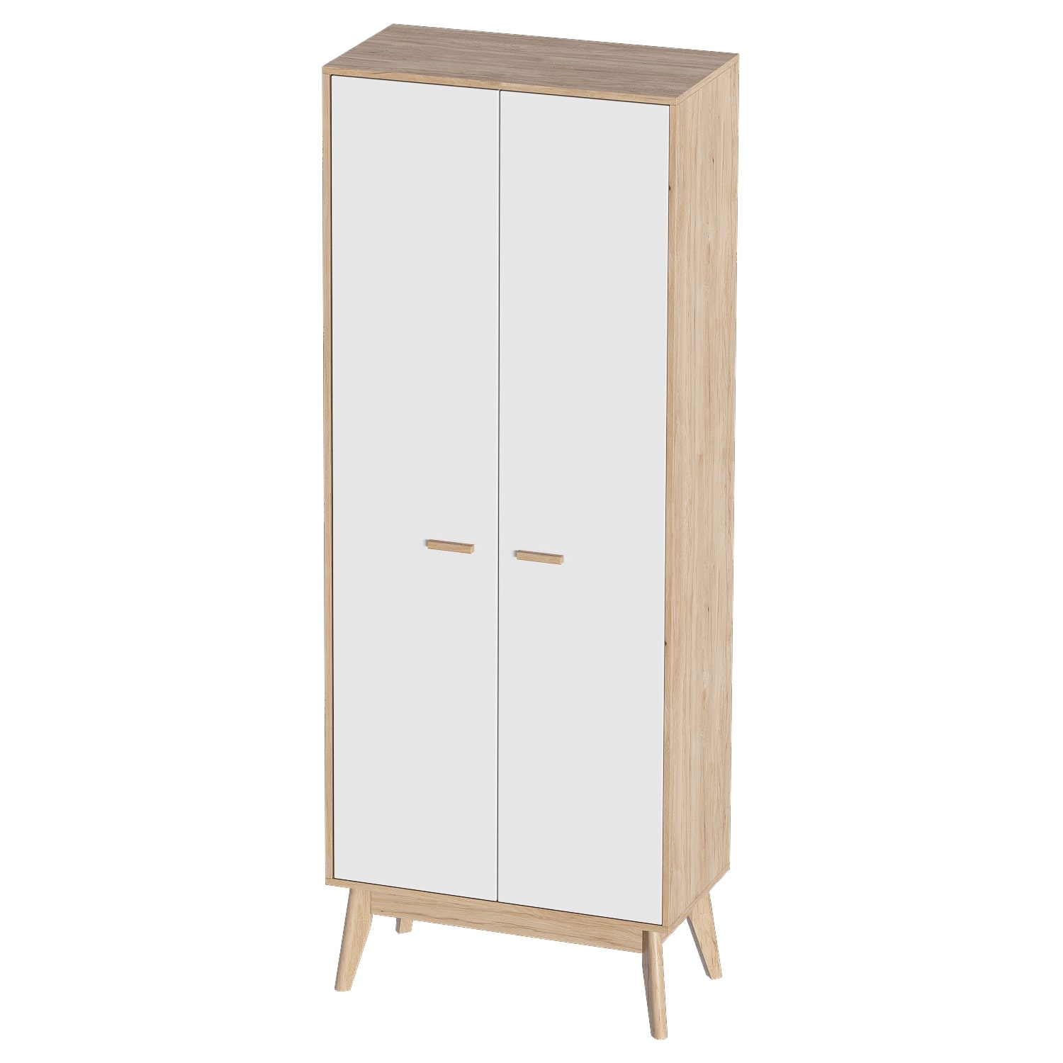 Шкаф "Калгари" для прихожей - это высокий, достаточно узкий и в то же время вместительный гардероб с выдвижной штангой для одежды на плечиках, белоснежными дверцами из МДФ и корпусом из ЛДСП цвета натурального дуба, который хорошо впишется в вашу прихожую, выполненный в модном скандинавском стиле.