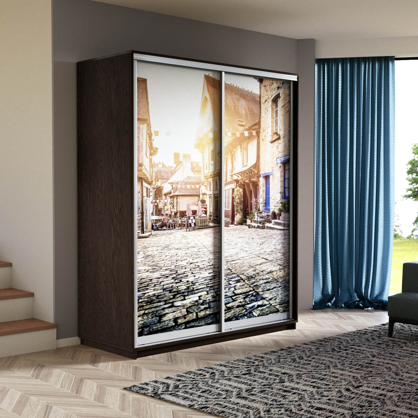 Шкаф-купе 2-х дверный Экспресс Фотопечать 2400х1400х450 мм доступен к заказу в различных вариантах исполнения цвета фасада и корпуса, среди которых каждый сможет найти подходящий своему интерьеру.