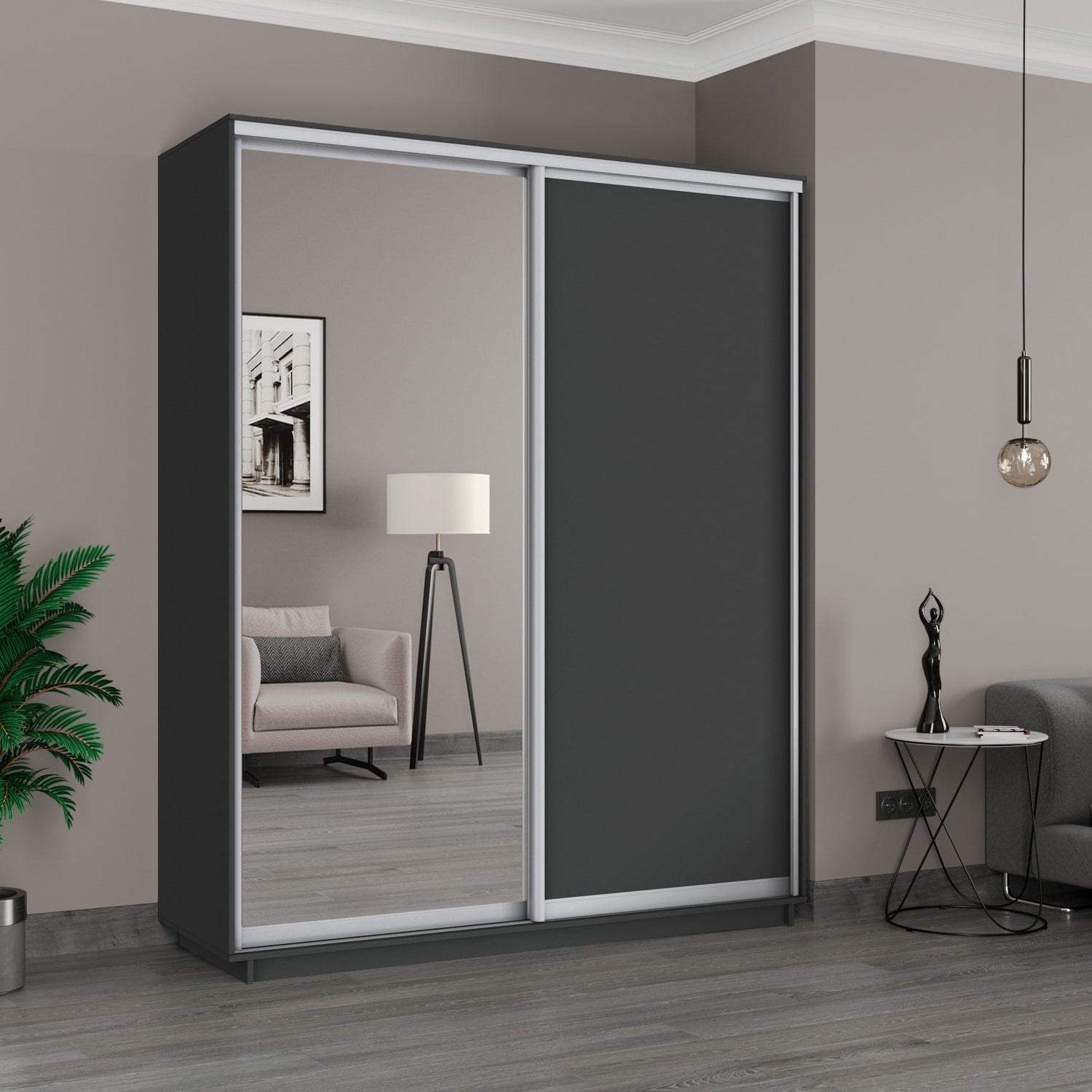 Шкаф-купе 2-х дверный Экспресс Медиум 2400х1800х450 мм доступен к заказу в различных вариантах исполнения цвета фасада и корпуса, среди которых каждый сможет найти подходящий своему интерьеру.