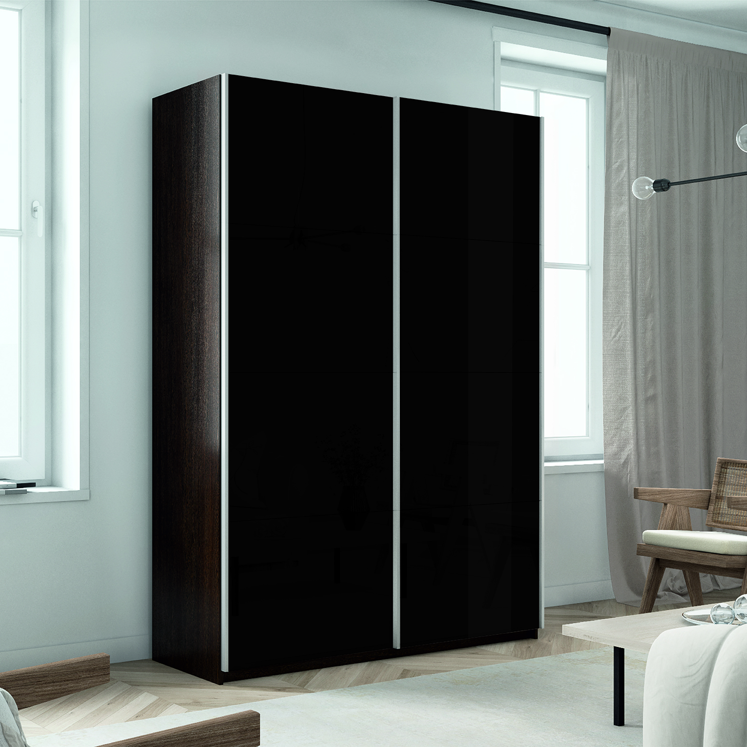 Шкаф-купе 2-х дверный Прайм Элемент Черное стекло 2300х1200х570 мм