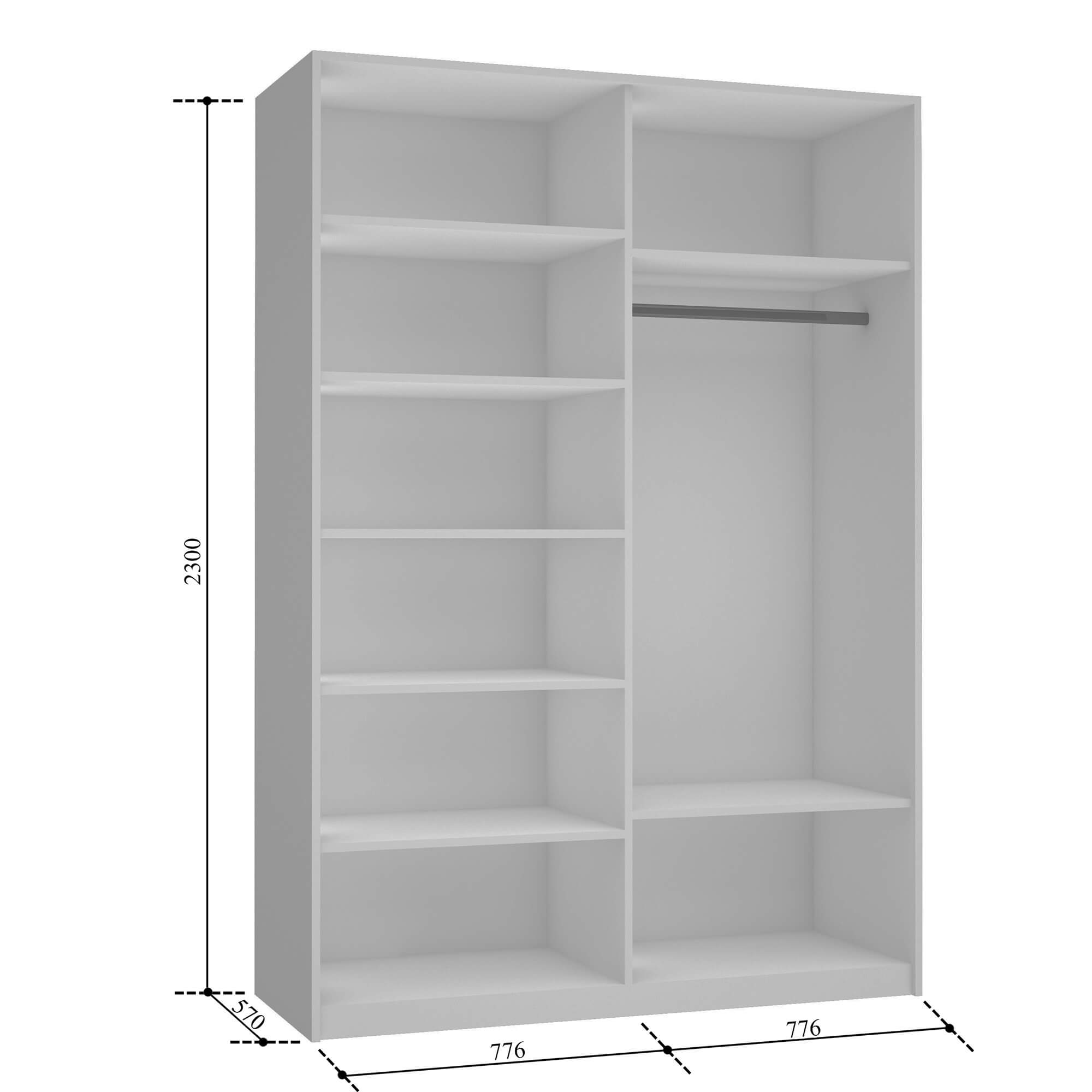 Шкаф-купе 2-х дверный Прайм Медиум Черное стекло 2300х1600х570 мм