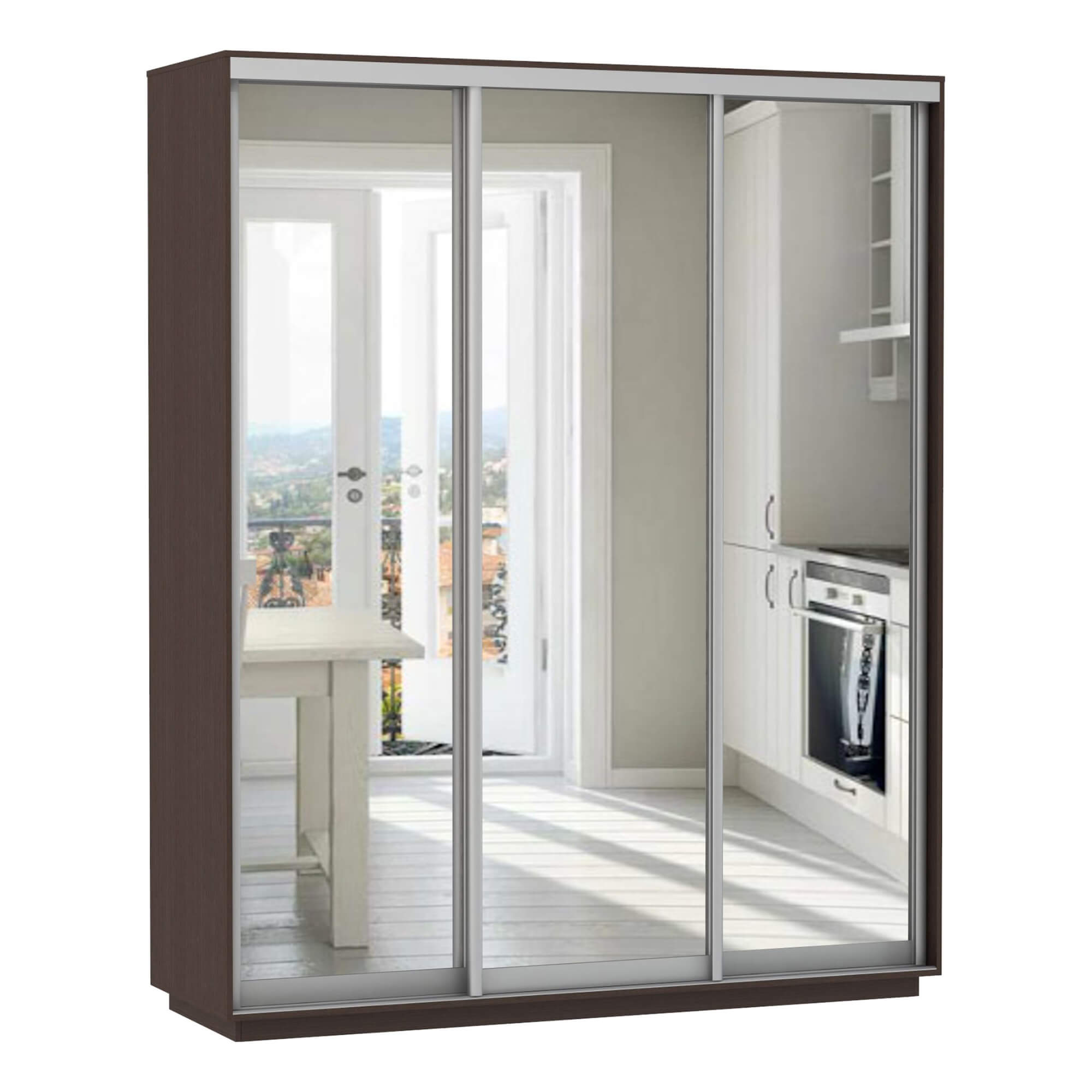 Шкаф-купе 3-х дверный Экспресс Экспенс 2200х1800х600 мм доступен к заказу в различных вариантах исполнения цвета фасада и корпуса, среди которых каждый сможет найти подходящий своему интерьеру.