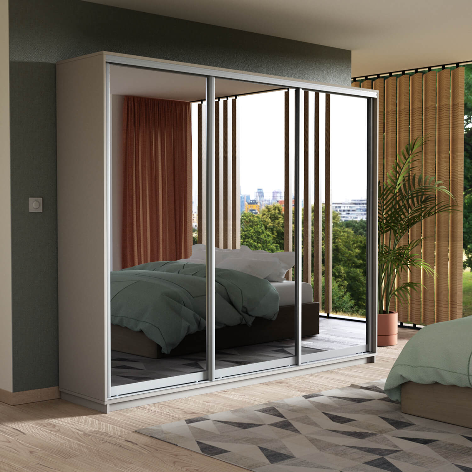 Шкаф-купе 3-х дверный Экспресс Экспенс 2400х2100х450 мм доступен к заказу в различных вариантах исполнения цвета фасада и корпуса, среди которых каждый сможет найти подходящий своему интерьеру.