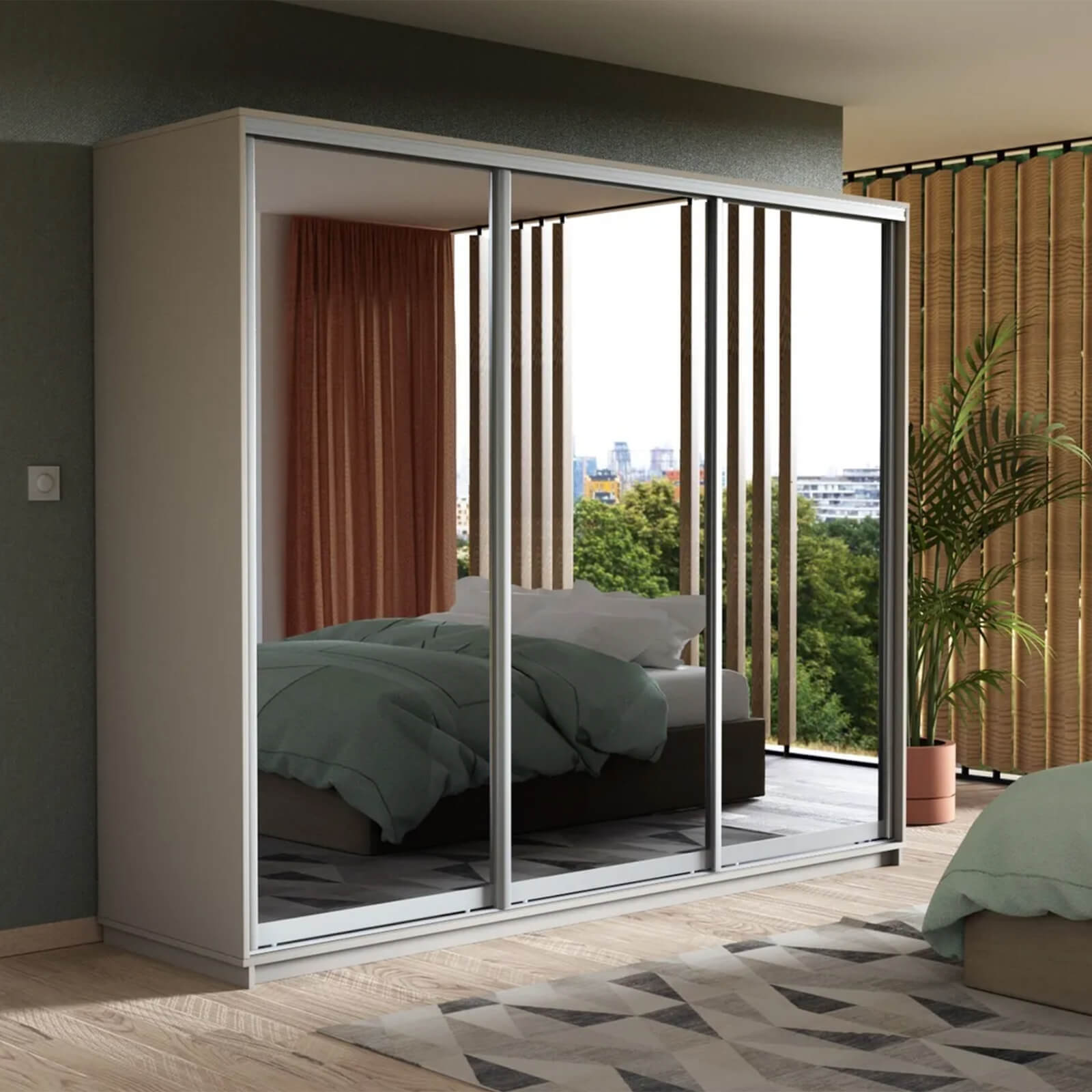 Шкаф-купе 3-х дверный Экспресс Экспенс 2400х2400х600 мм доступен к заказу в различных вариантах исполнения цвета фасада и корпуса, среди которых каждый сможет найти подходящий своему интерьеру.