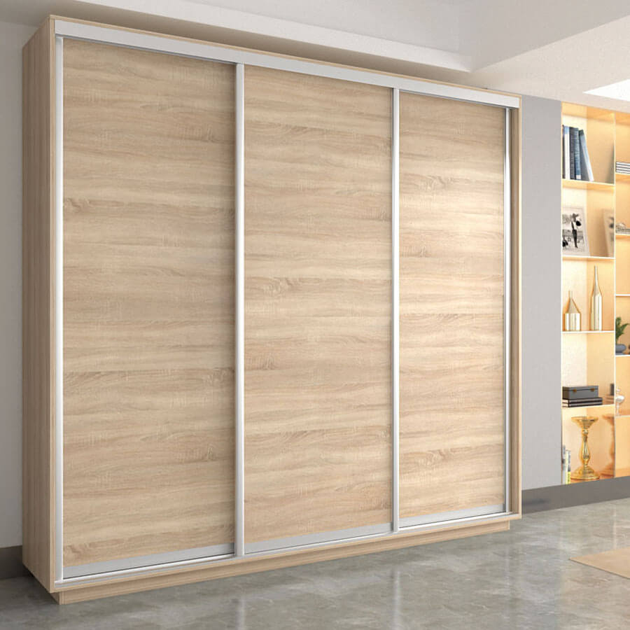 Шкаф-купе 3-х дверный Экспресс Элемент 2200х2400х600 мм доступен к заказу в различных вариантах исполнения цвета фасада и корпуса, среди которых каждый сможет найти подходящий своему интерьеру.