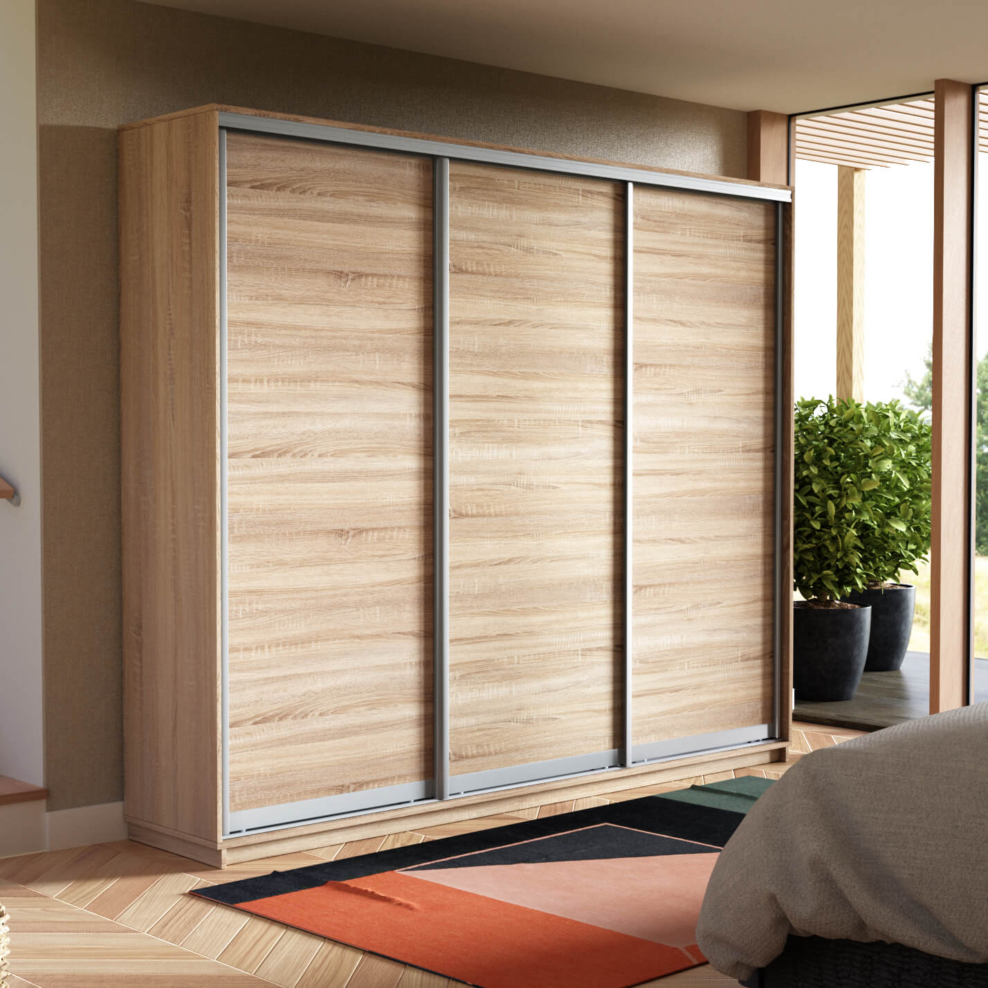 Шкаф-купе 3-х дверный Экспресс Элемент 2400х1800х450 мм доступен к заказу в различных вариантах исполнения цвета фасада и корпуса, среди которых каждый сможет найти подходящий своему интерьеру.