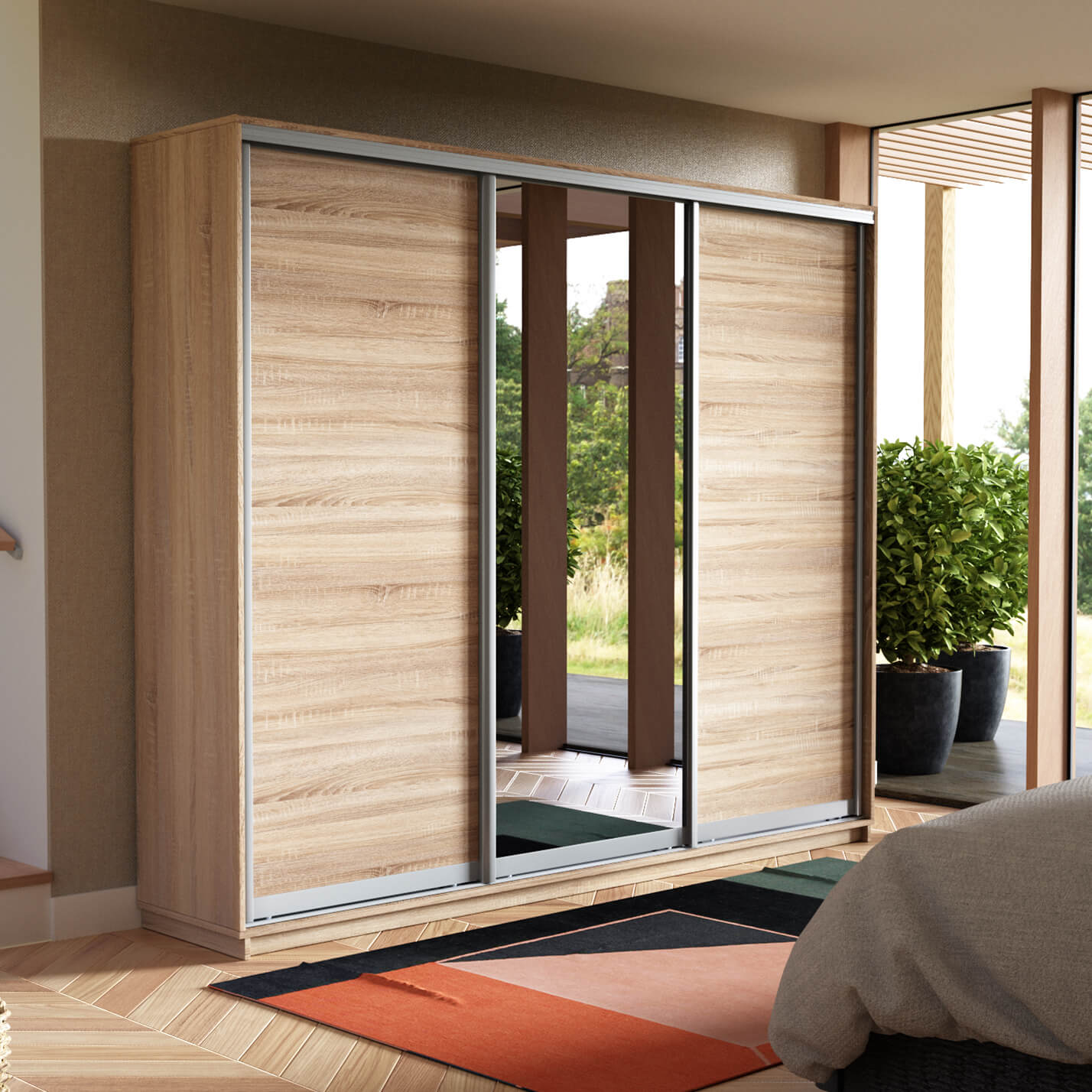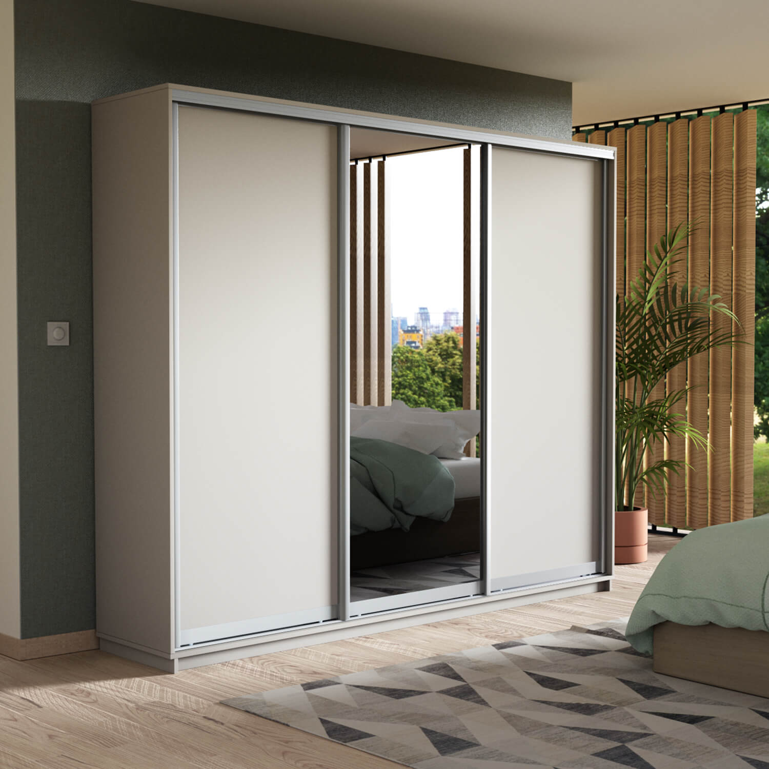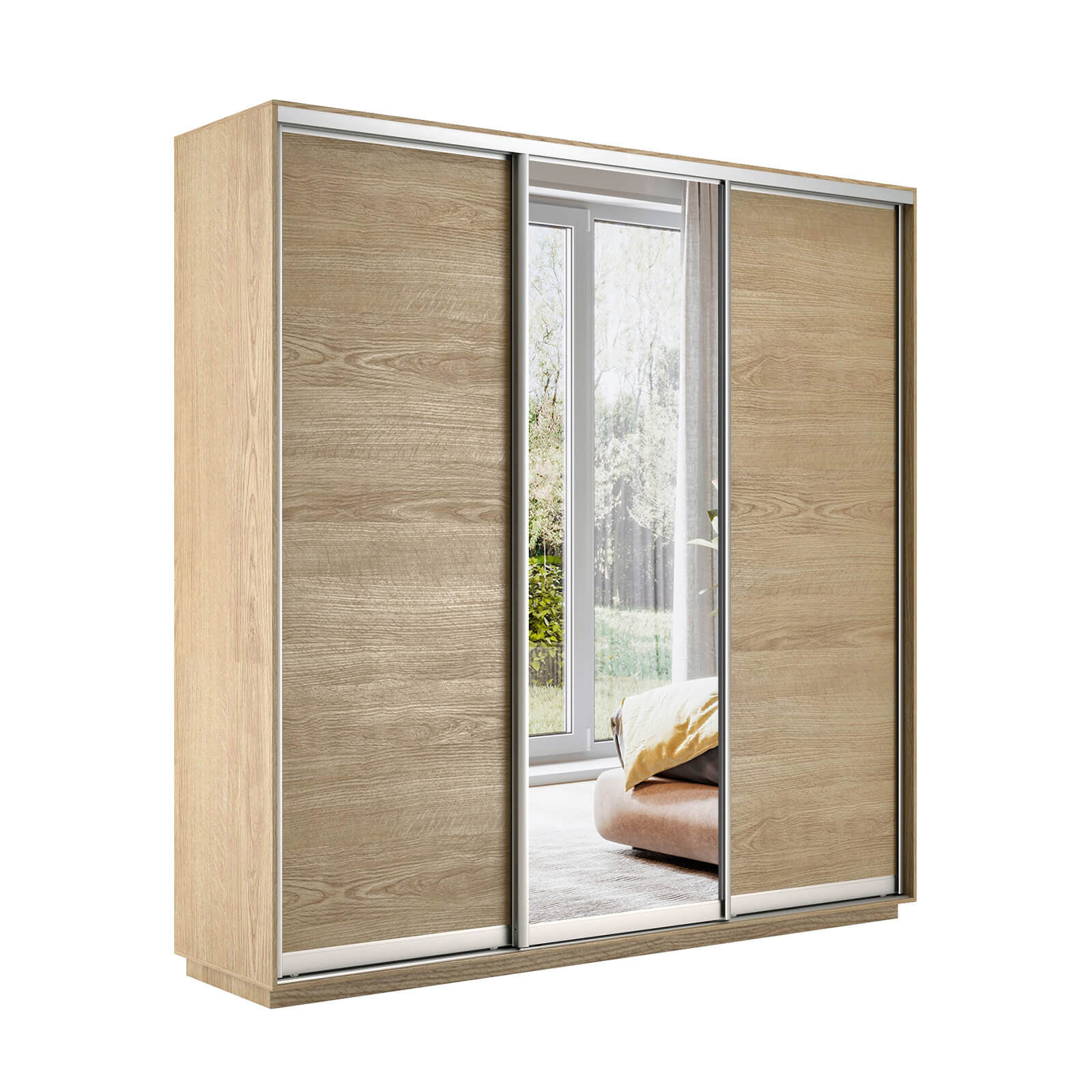 Шкаф-купе 3-х дверный Экспресс Медиум 2200х2100х450 мм доступен к заказу в различных вариантах исполнения цвета фасада и корпуса, среди которых каждый сможет найти подходящий своему интерьеру.