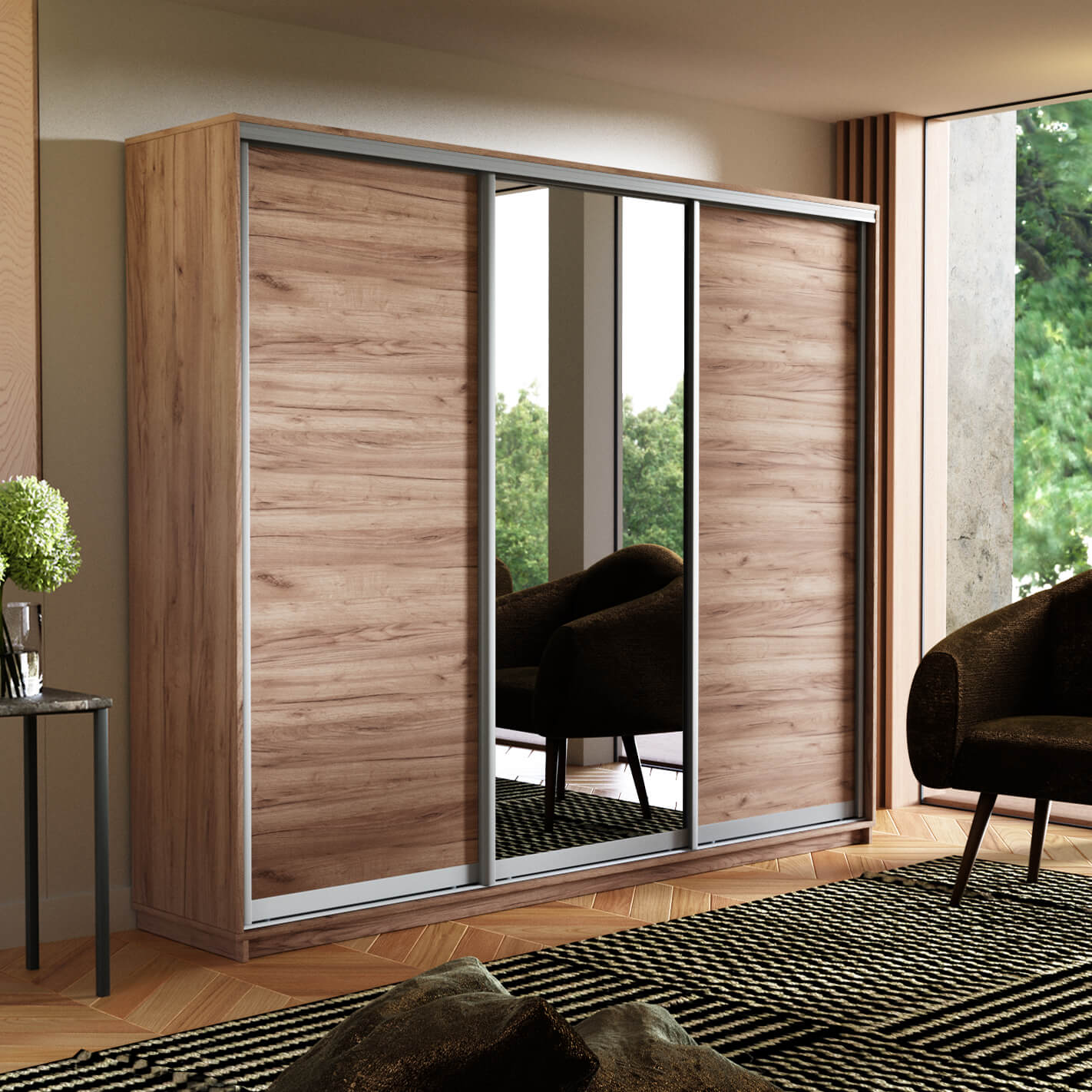 Шкаф-купе 3-х дверный Экспресс Медиум 2400х2100х450 мм доступен к заказу в различных вариантах исполнения цвета фасада и корпуса, среди которых каждый сможет найти подходящий своему интерьеру.