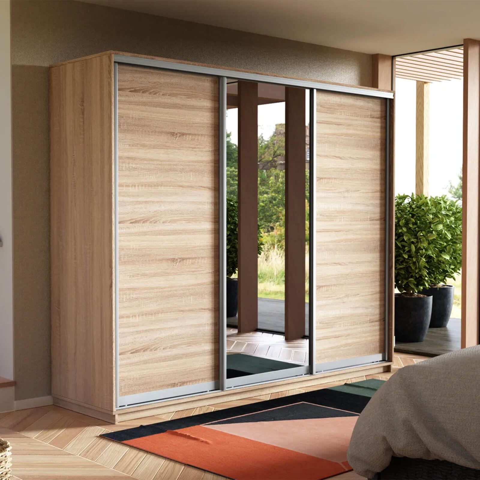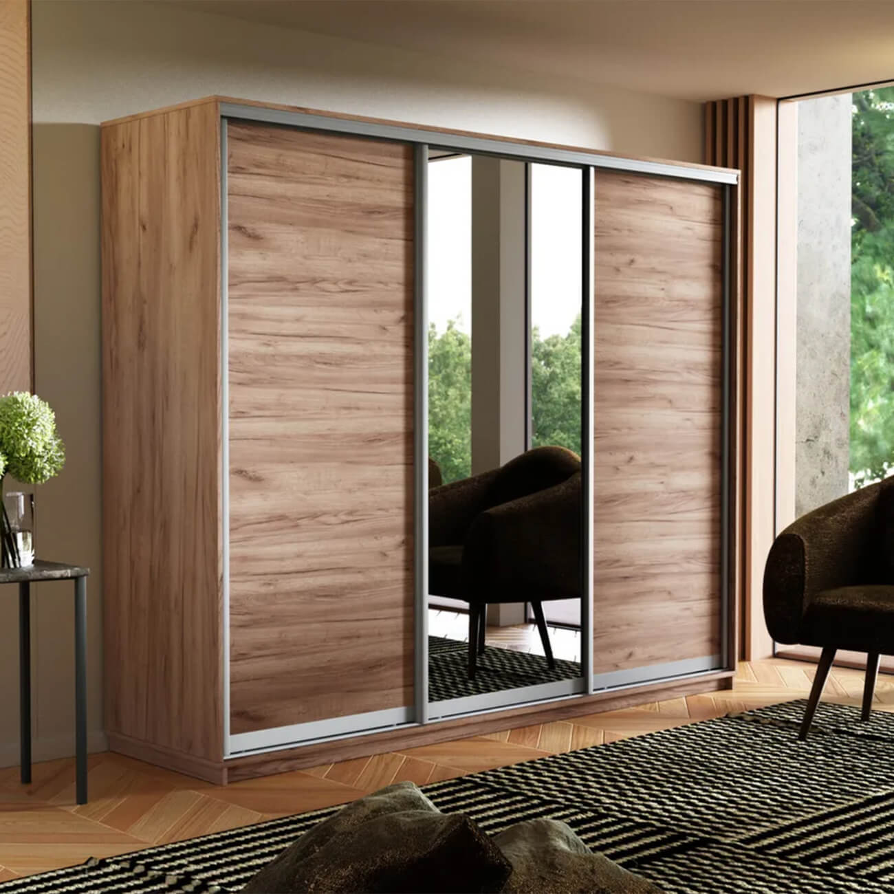 Шкаф-купе 3-х дверный Экспресс Медиум 2400х2100х600 мм доступен к заказу в различных вариантах исполнения цвета фасада и корпуса, среди которых каждый сможет найти подходящий своему интерьеру.