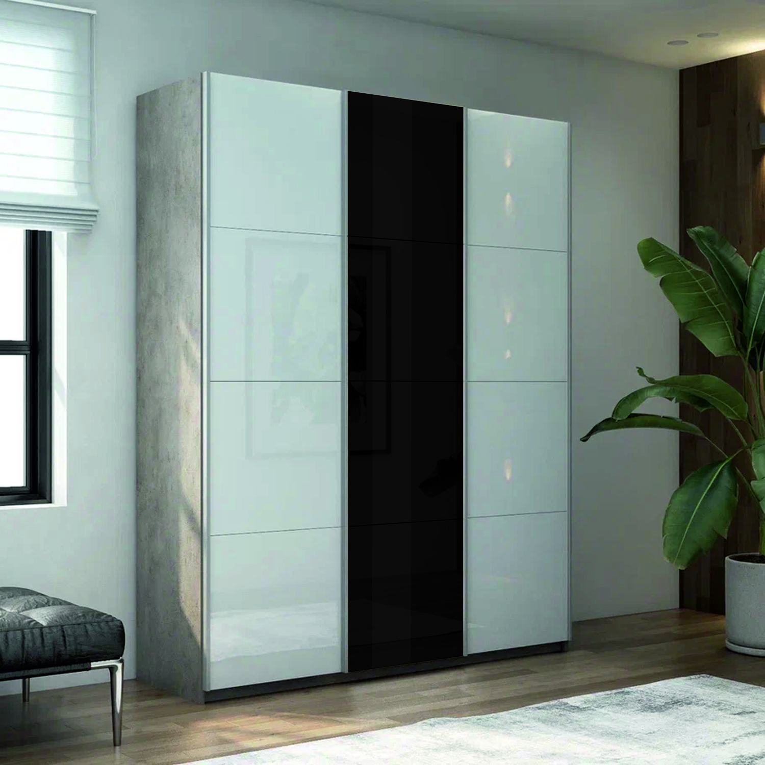 Шкаф-купе 3-х дверный Прайм Элемент Белое/Черное стекло 2300х1800х570 мм