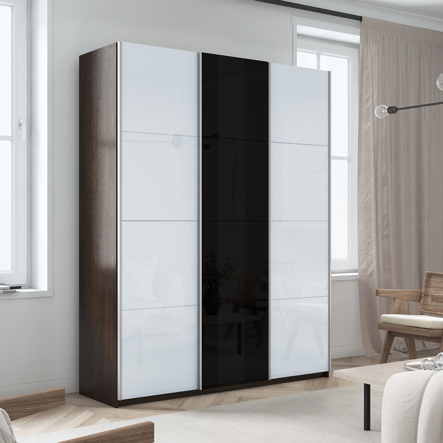 Шкаф-купе 3-х дверный Прайм Элемент Белое/Черное стекло 2300х2100х570 мм, материал корпуса - ЛДСП. Производитель - Е1. Шкафы-купе Прайм – это качественные модели с оригинальными и современными фасадами. Идеальное решение для Вашего гардероба! Внутри имеются вместительные полки для складирования сложенных вещей, антресоли и секция для размещения одежды на плечиках. С таким количеством мест для хранения вы можете рассортировать вещи и поддерживать идеальный порядок в шкафу. Прочная система направляющих прослужит долгие годы. При изготовлении шкафов-купе используются только экологически безопасные материалы, благодаря чему Вы приобретаете добротную корпусную мебель, соответствующую европейскому уровню качества. Шкаф-купе 3-х дверный Прайм Элемент Белое/Черное стекло 2300х2100х570 мм доступен к заказу в различных вариантах исполнения цвета фасада и корпуса, среди которых каждый сможет найти подходящий своему интерьеру. Оформите заказ на сайте или свяжитесь с нами для уточнения деталей.