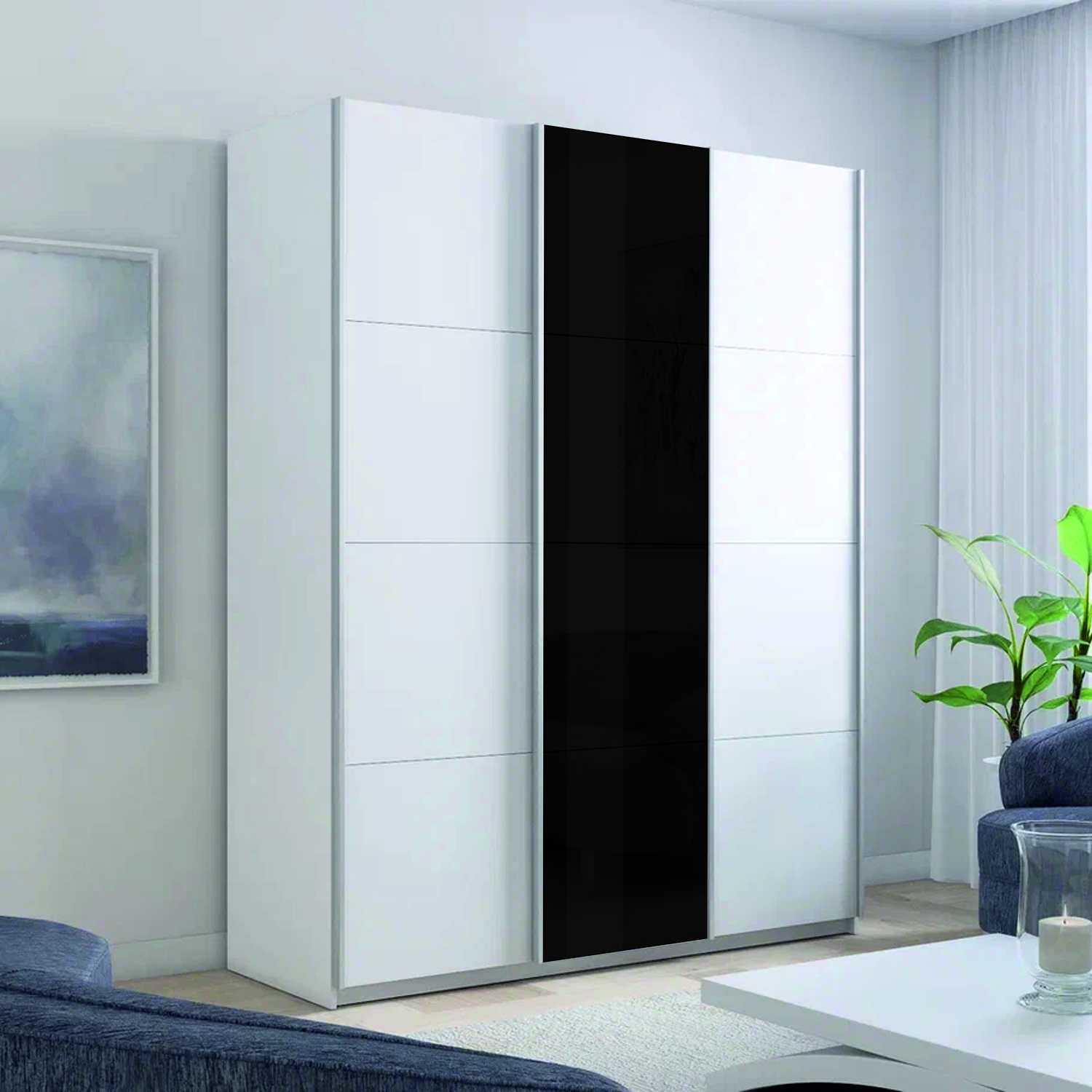 Шкаф-купе 3-х дверный Прайм Элемент Белое/Черное стекло 2300х2100х570 мм
