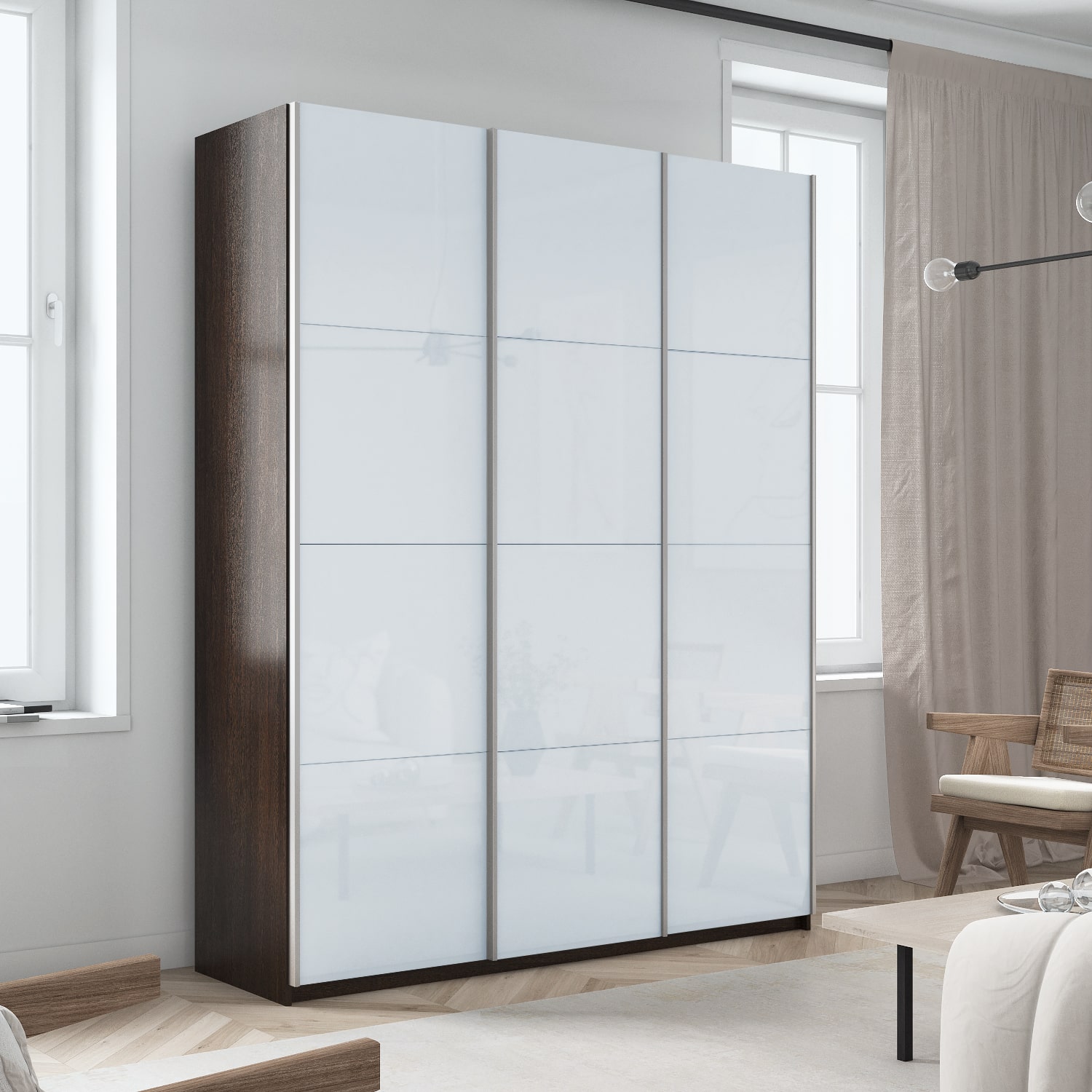 Шкаф-купе 3-х дверный Прайм Элемент Белое стекло 2300х2100х570 мм, материал корпуса - ЛДСП. Производитель - Е1. Шкафы-купе Прайм – это качественные модели с оригинальными и современными фасадами. Идеальное решение для Вашего гардероба! Внутри имеются вместительные полки для складирования сложенных вещей, антресоли и секция для размещения одежды на плечиках. С таким количеством мест для хранения вы можете рассортировать вещи и поддерживать идеальный порядок в шкафу. Прочная система направляющих прослужит долгие годы. При изготовлении шкафов-купе используются только экологически безопасные материалы, благодаря чему Вы приобретаете добротную корпусную мебель, соответствующую европейскому уровню качества. Шкаф-купе 3-х дверный Прайм Элемент Белое стекло 2300х2100х570 мм доступен к заказу в различных вариантах исполнения цвета фасада и корпуса, среди которых каждый сможет найти подходящий своему интерьеру. Оформите заказ на сайте или свяжитесь с нами для уточнения деталей.
