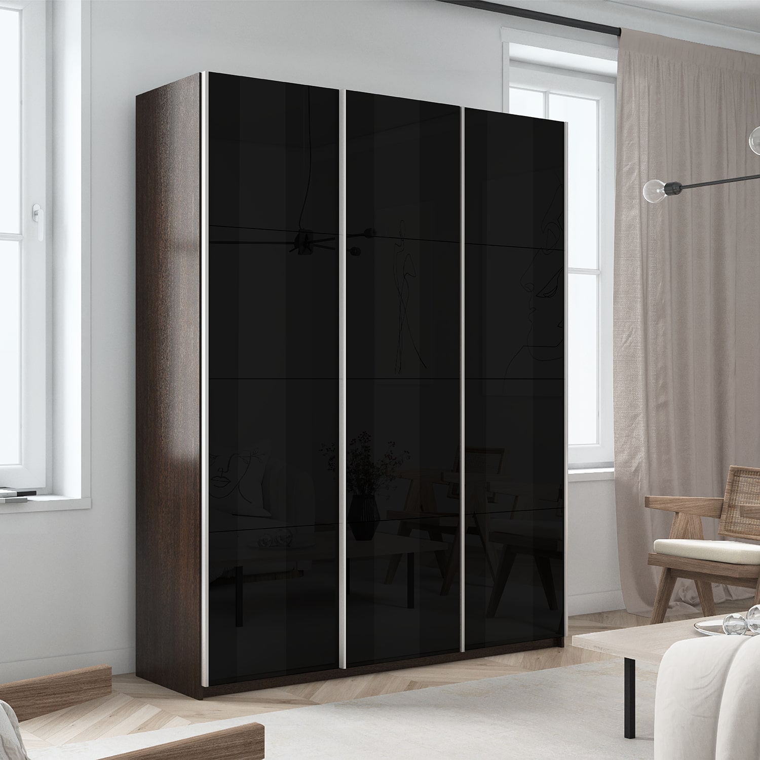 Шкаф-купе 3-х дверный Прайм Элемент Черное стекло 2300х2100х570 мм, материал корпуса - ЛДСП. Производитель - Е1. Шкафы-купе Прайм – это качественные модели с оригинальными и современными фасадами. Идеальное решение для Вашего гардероба! Внутри имеются вместительные полки для складирования сложенных вещей, антресоли и секция для размещения одежды на плечиках. С таким количеством мест для хранения вы можете рассортировать вещи и поддерживать идеальный порядок в шкафу. Прочная система направляющих прослужит долгие годы. При изготовлении шкафов-купе используются только экологически безопасные материалы, благодаря чему Вы приобретаете добротную корпусную мебель, соответствующую европейскому уровню качества. Шкаф-купе 3-х дверный Прайм Элемент Черное стекло 2300х2100х570 мм доступен к заказу в различных вариантах исполнения цвета фасада и корпуса, среди которых каждый сможет найти подходящий своему интерьеру. Оформите заказ на сайте или свяжитесь с нами для уточнения деталей.