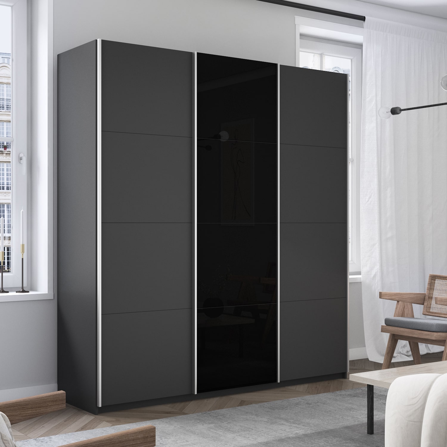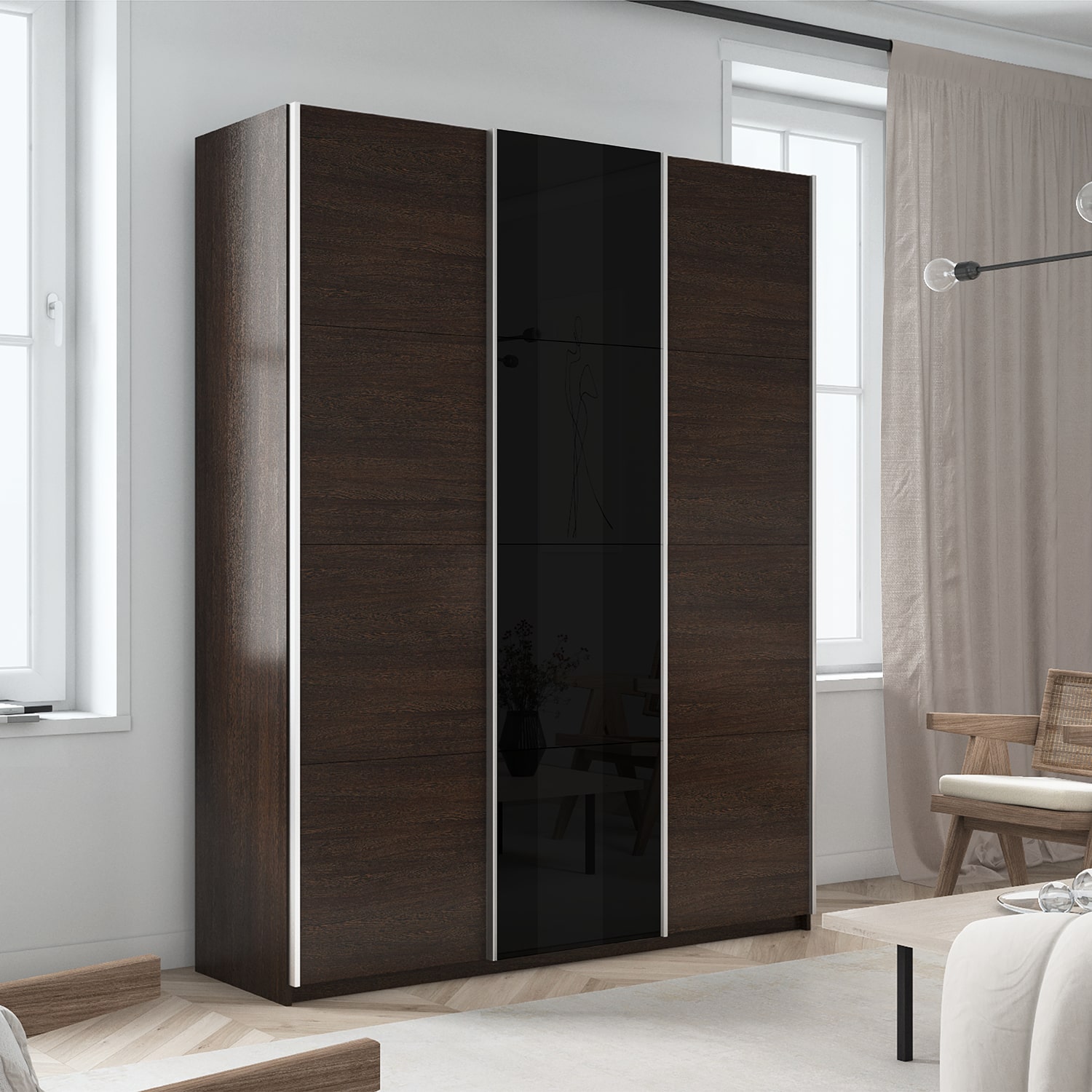 Шкаф-купе 3-х дверный Прайм Элемент ЛДСП/Черное стекло 2300х1800х570 мм