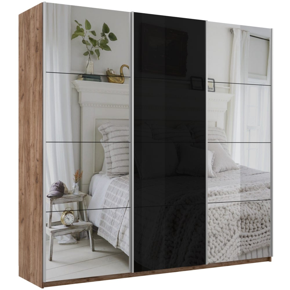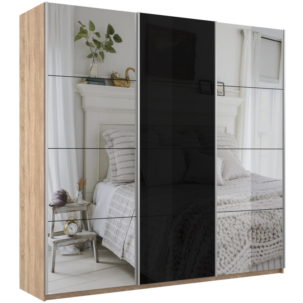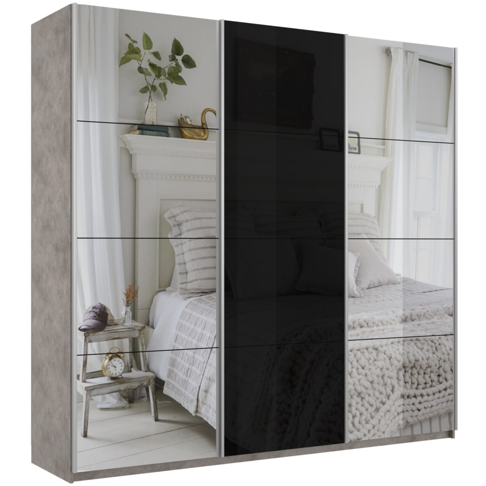 Шкаф-купе 3-х дверный Прайм Медиум Черное стекло/2 зеркала 2300х2100х570 мм