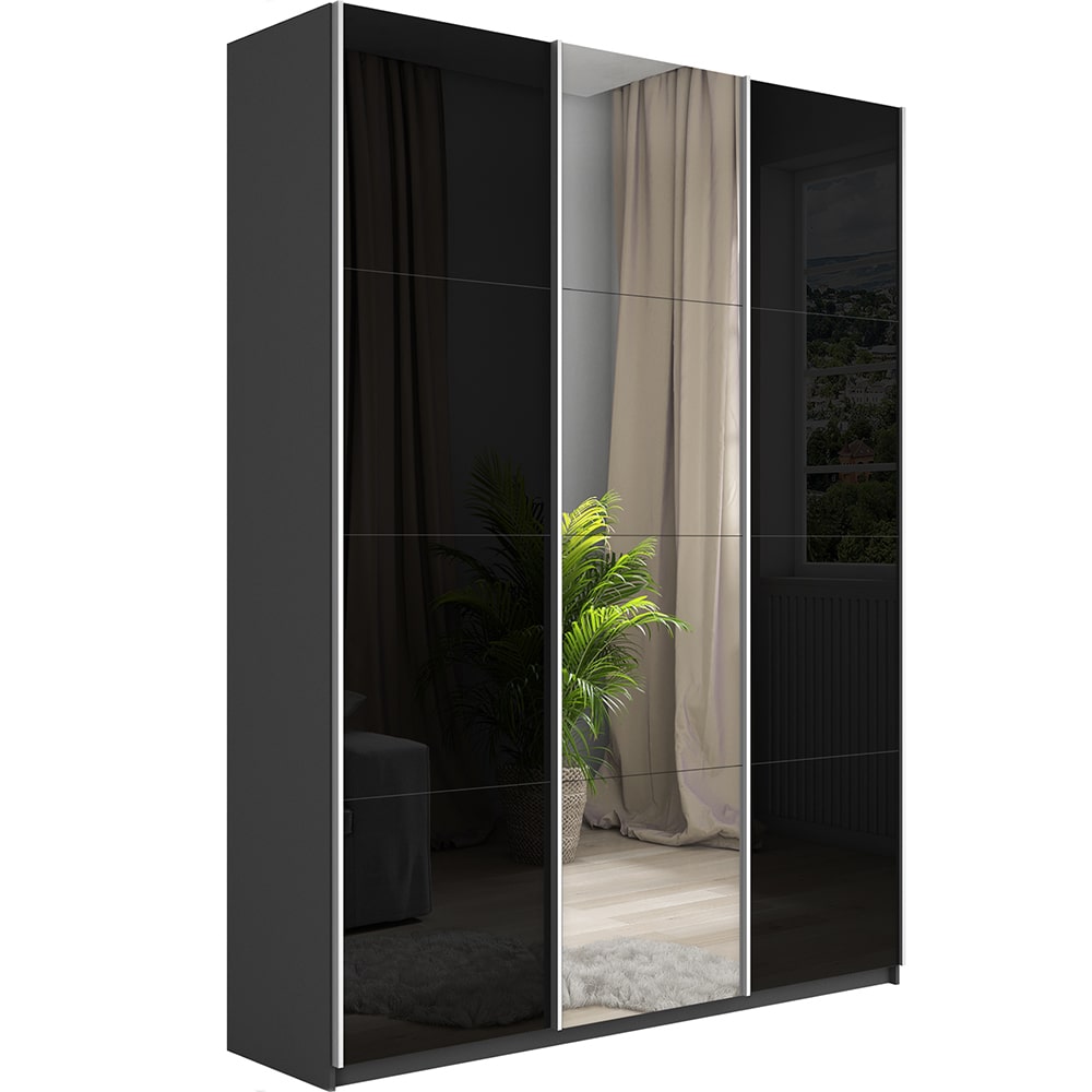 Шкаф-купе 3-х дверный Прайм Медиум Черное стекло 2300х1800х570 мм