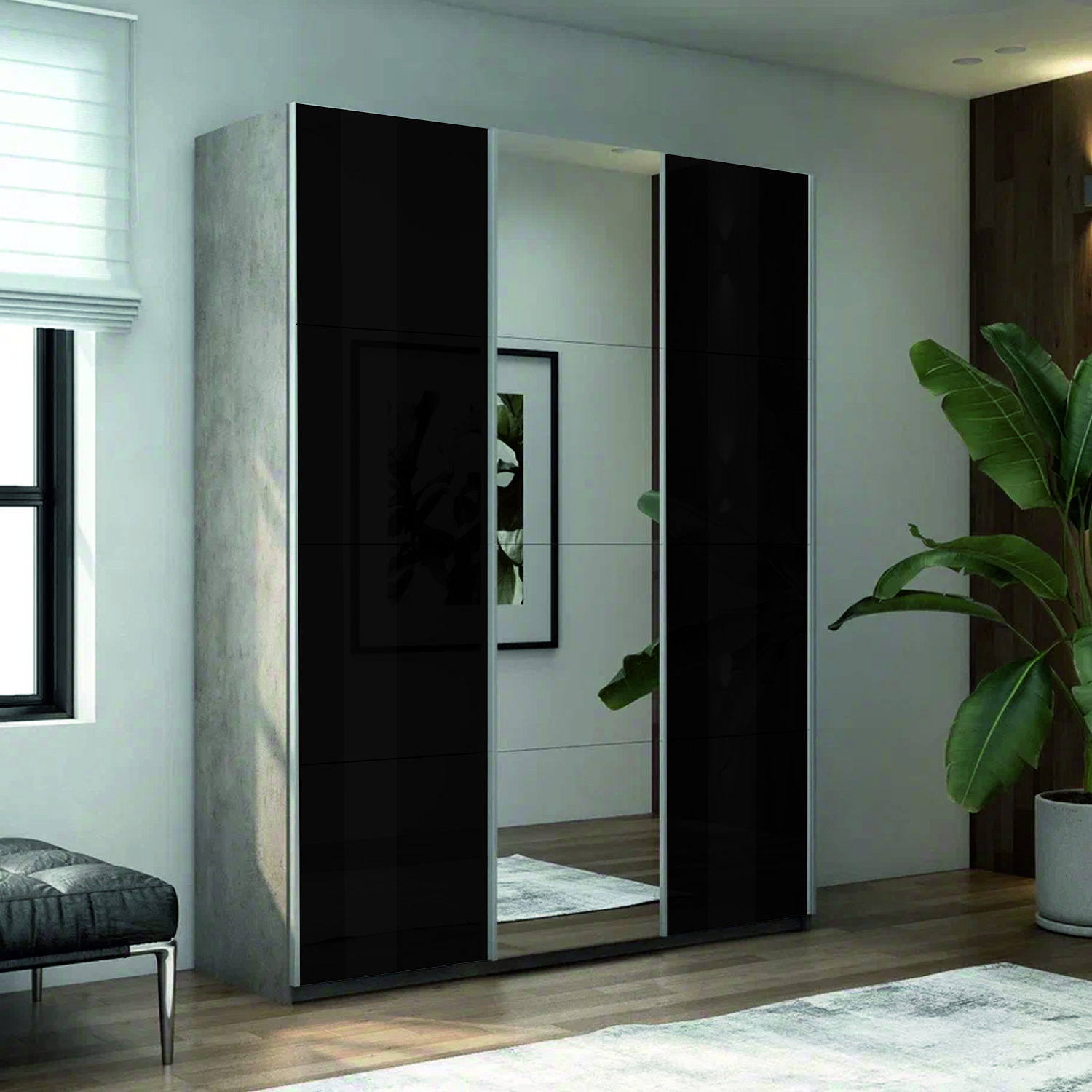 Шкаф-купе 3-х дверный Прайм Медиум Черное стекло 2300х2100х570 мм