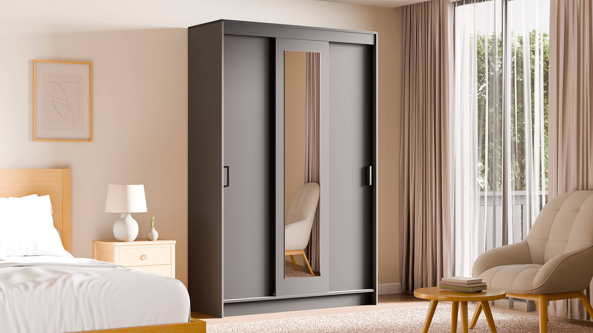 Шкаф-купе БРУНО 5 Графит доступен к заказу в различных вариантах исполнения цвета фасада и корпуса, среди которых каждый сможет найти подходящий своему интерьеру.
