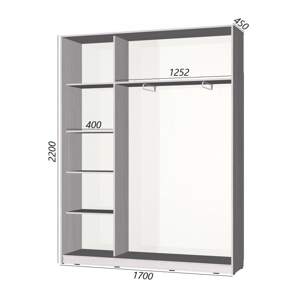 Шкаф-купе серии «Старт» 1700 - это отличная модель для огромного женского или семейного гардероба. Она славится эргономикой, надежностью исполнения, прочна и удобна в использовании.