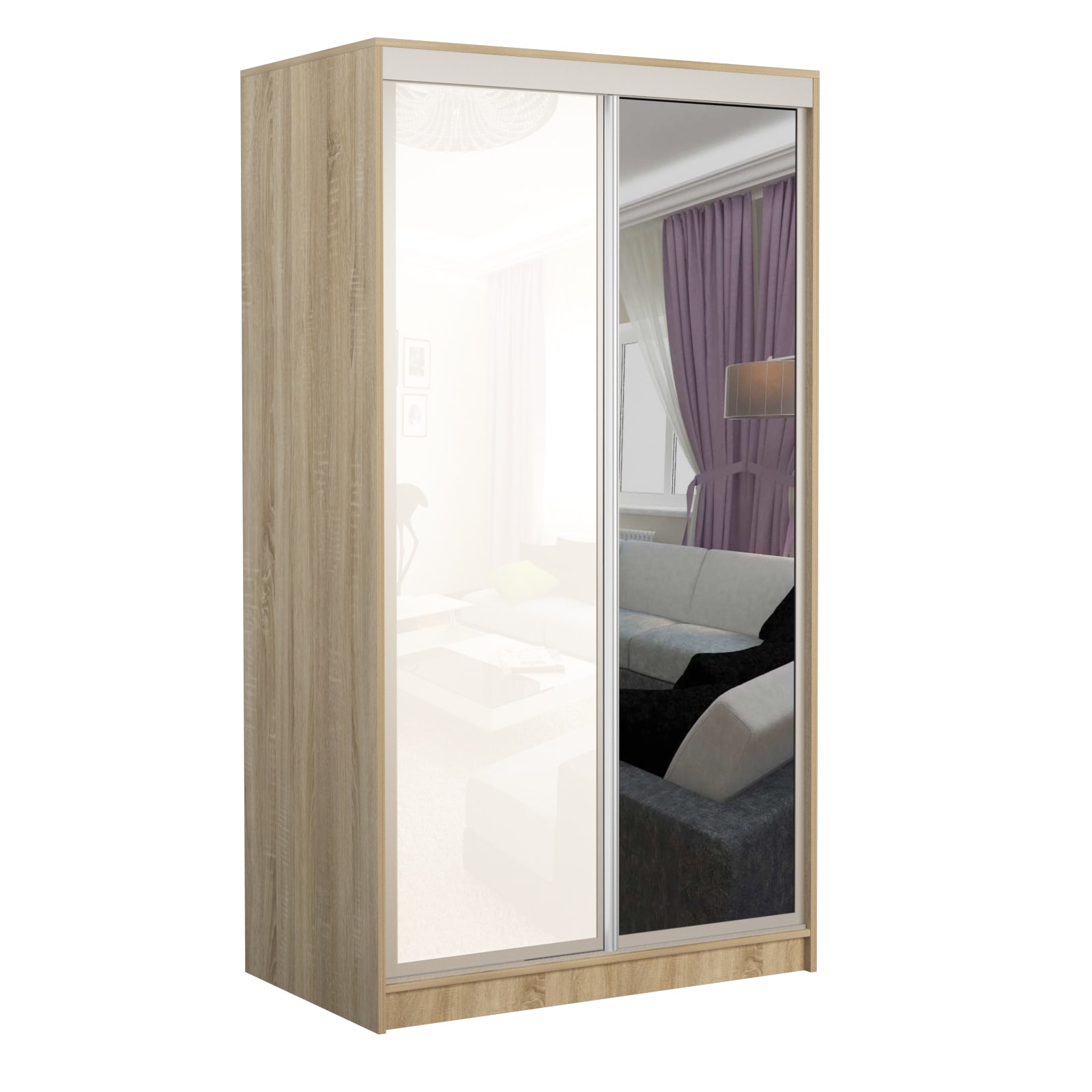 Шкаф-купе Старт 2-дверный МДФ с зеркалом 1300 (высота 2400, глубина 600), материал корпуса - ЛДСП. Производитель - VM-mebel.