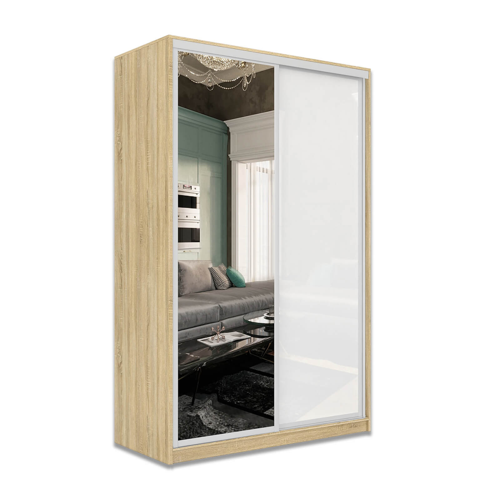 Шкаф-купе Старт 2-дверный МДФ с зеркалом 1400 (высота 2200, глубина 600), материал корпуса - ЛДСП. Производитель - VM-mebel.