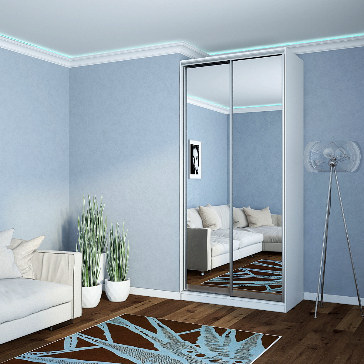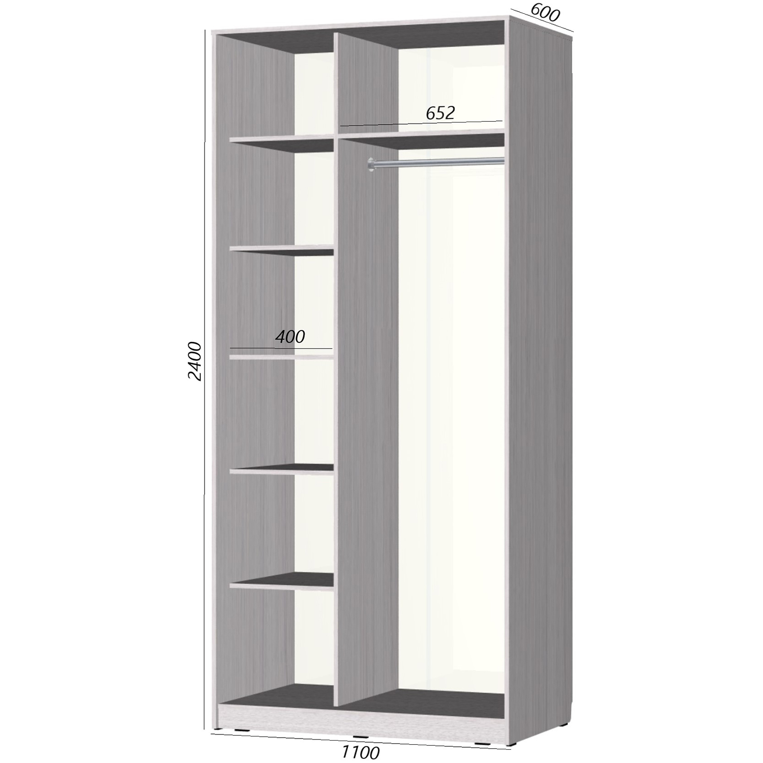 Шкаф-купе Старт 2-дверный с 2-мя зеркалами 1100 (высота 2400, глубина 600) доступен к заказу в различных вариантах исполнения цвета фасада и корпуса, среди которых каждый сможет найти подходящий своему интерьеру.