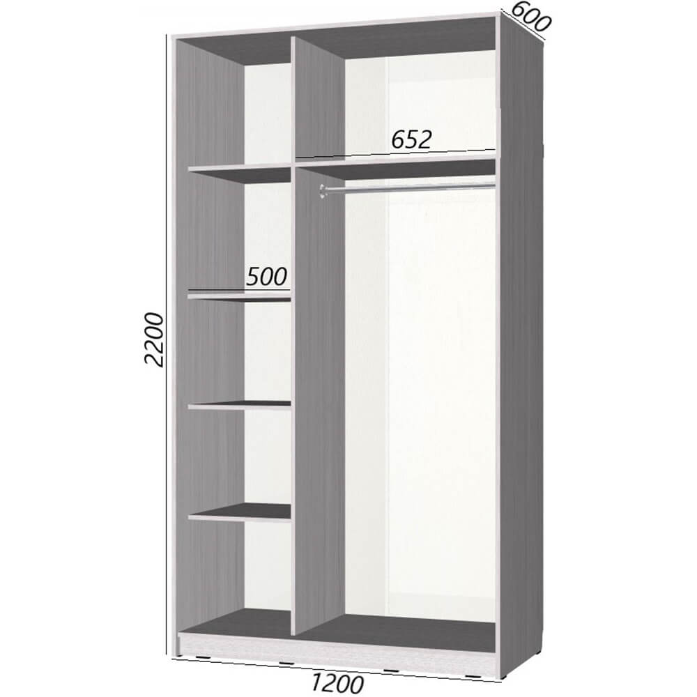 Шкаф-купе Старт 2-дверный с 2-мя зеркалами 1200 (высота 2200, глубина 600), материал корпуса - ЛДСП. Производитель - VM-mebel.