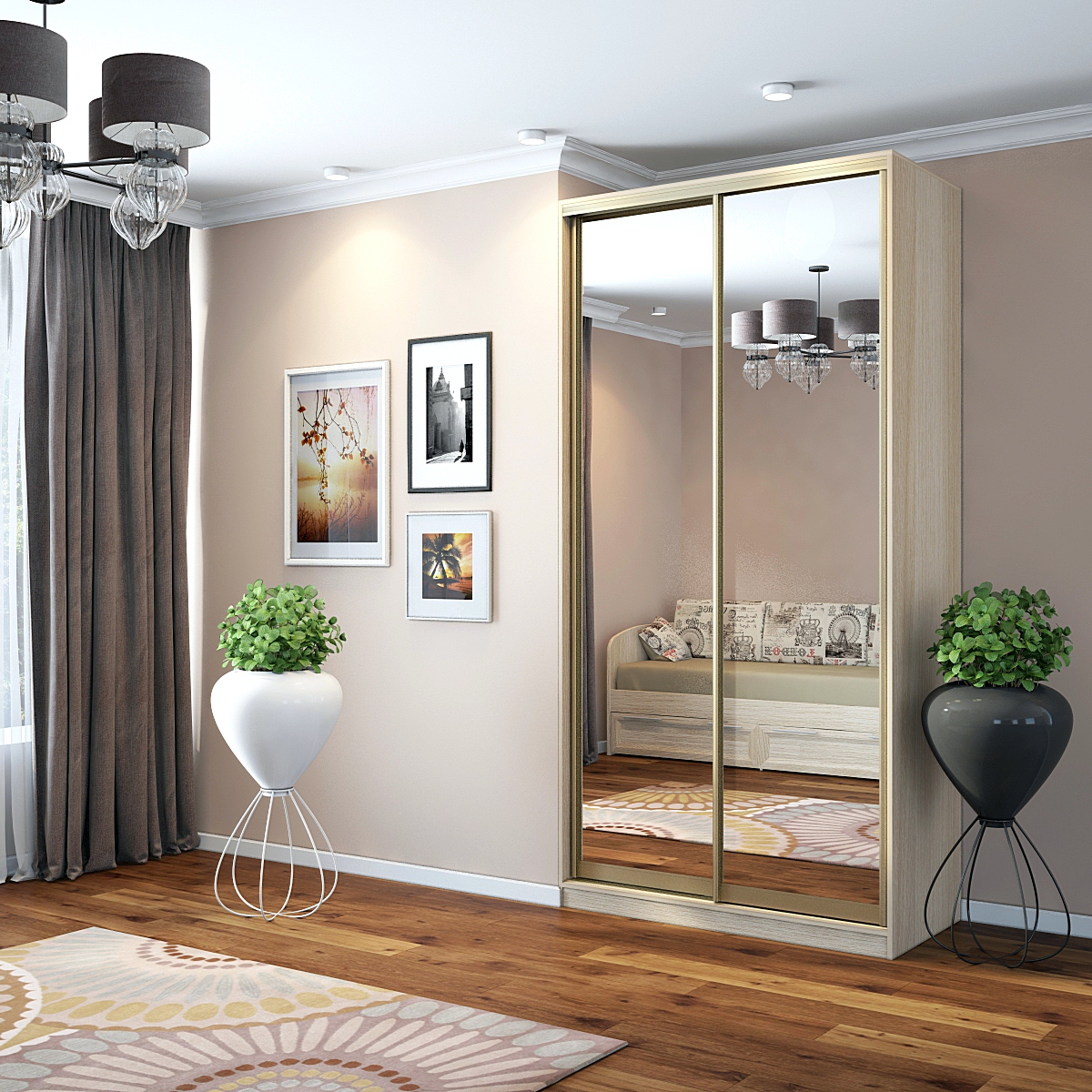 Шкаф-купе Старт 2-дверный с 2-мя зеркалами 1200 (высота 2400, глубина 600) доступен к заказу в различных вариантах исполнения цвета фасада и корпуса, среди которых каждый сможет найти подходящий своему интерьеру.