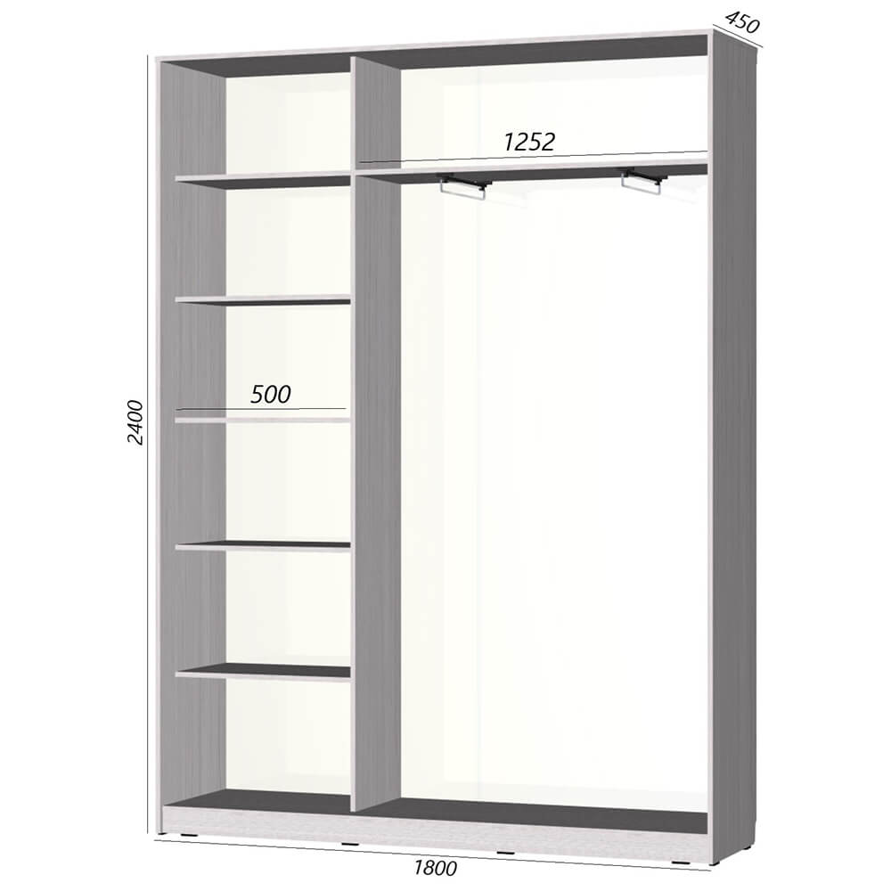 Шкаф-купе серии «Старт» 1800 - это отличная модель для огромного женского или семейного гардероба. Она славится эргономикой, надежностью исполнения, прочна и удобна в использовании.