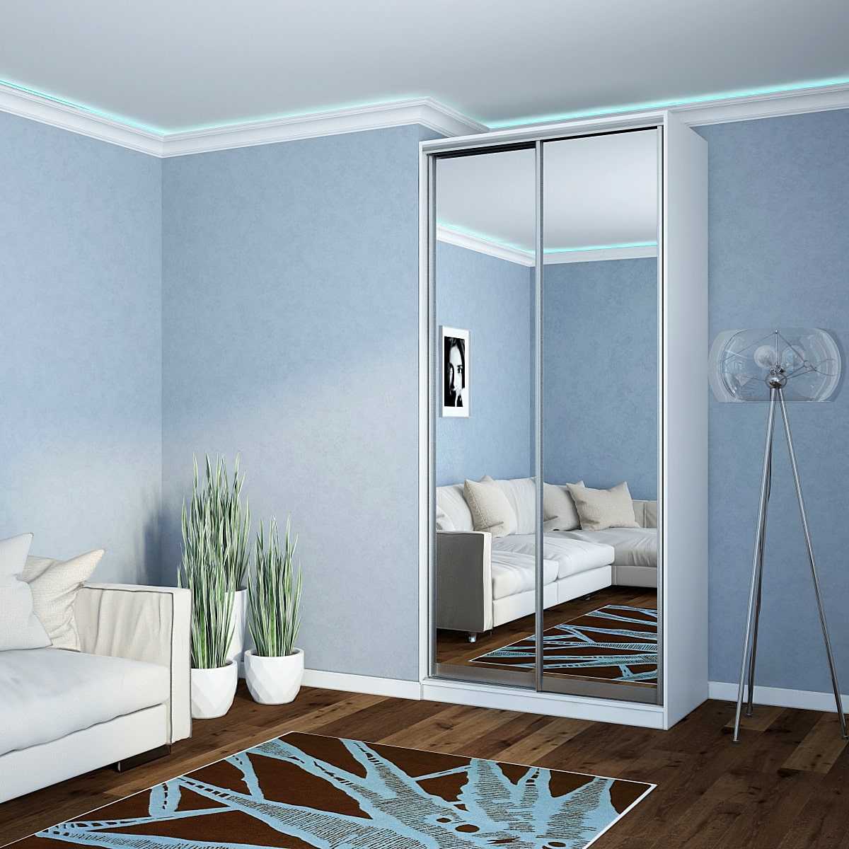 Шкаф-купе Старт 2-дверный с 2-мя зеркалами 1100 (высота 2400, глубина 450) доступен к заказу в различных вариантах исполнения цвета фасада и корпуса, среди которых каждый сможет найти подходящий своему интерьеру.