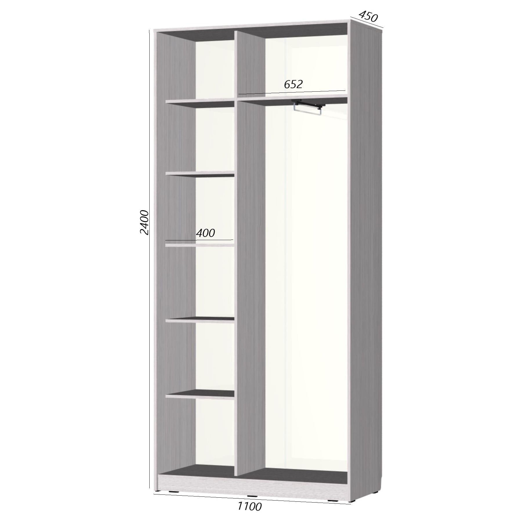 Шкаф-купе Старт 2-дверный с 2-мя зеркалами со вставками 1100 (высота 2400, глубина 450) доступен к заказу в различных вариантах исполнения цвета фасада и корпуса, среди которых каждый сможет найти подходящий своему интерьеру.
