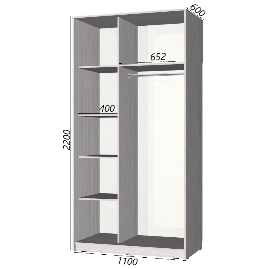 Шкаф-купе Старт 2-дверный с зеркалом и ЛДСП 1100 (высота 2200, глубина 600), материал корпуса - ЛДСП. Производитель - VM-mebel.