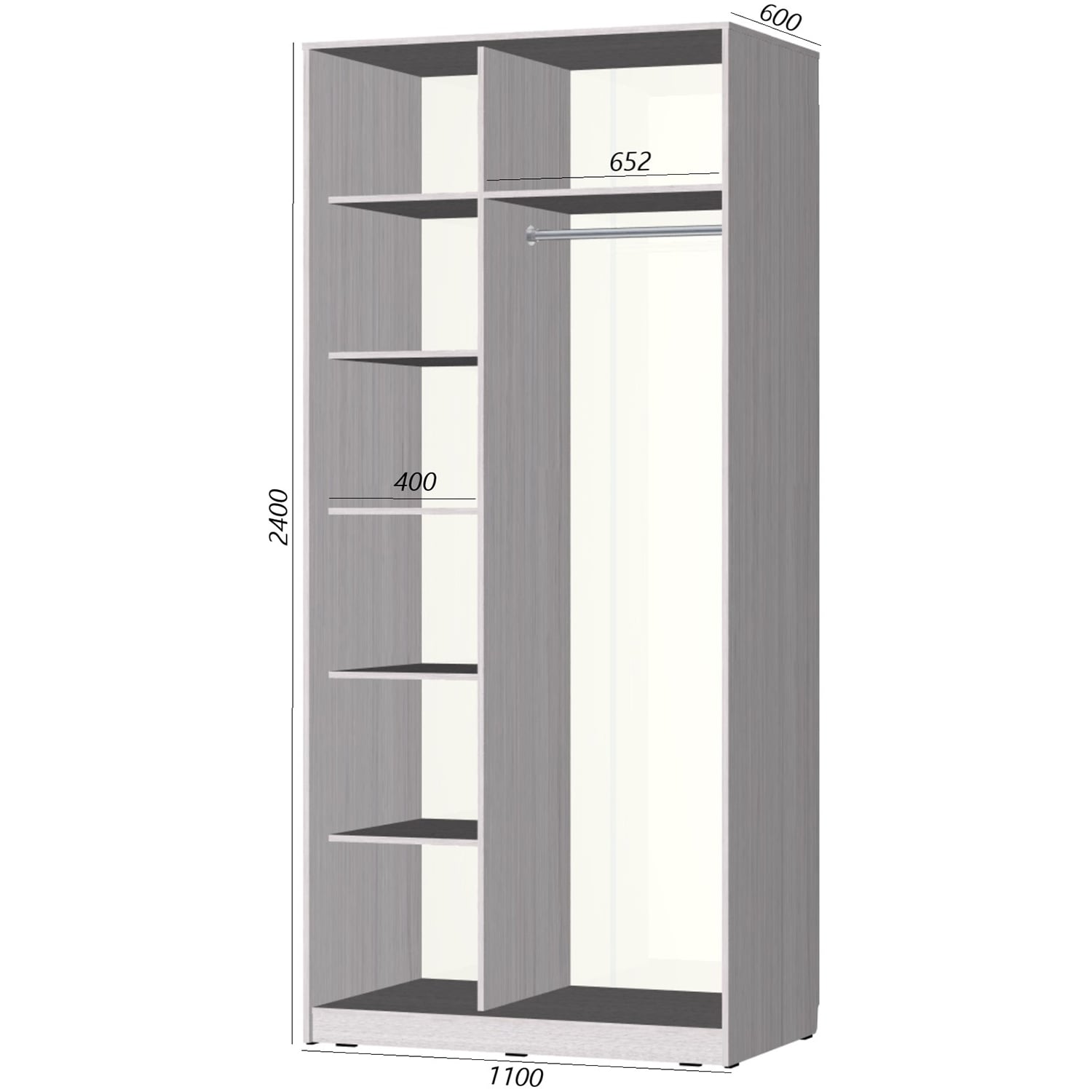 Шкаф-купе Старт 2-дверный с зеркалом и ЛДСП со вставками 1100 (высота 2400, глубина 600), материал корпуса - ЛДСП. Производитель - VM-mebel.