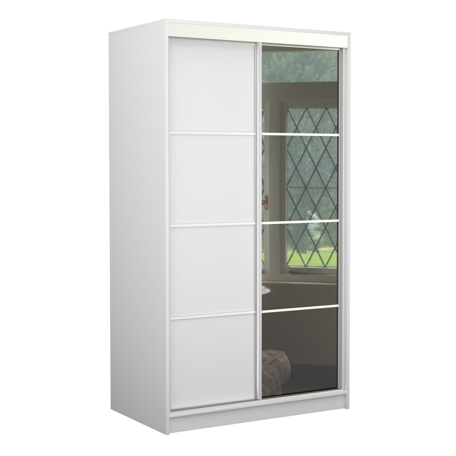 Шкаф-купе изготовлен из алюминиевого каркаса, это придает конструкции особую жесткость и прочность.