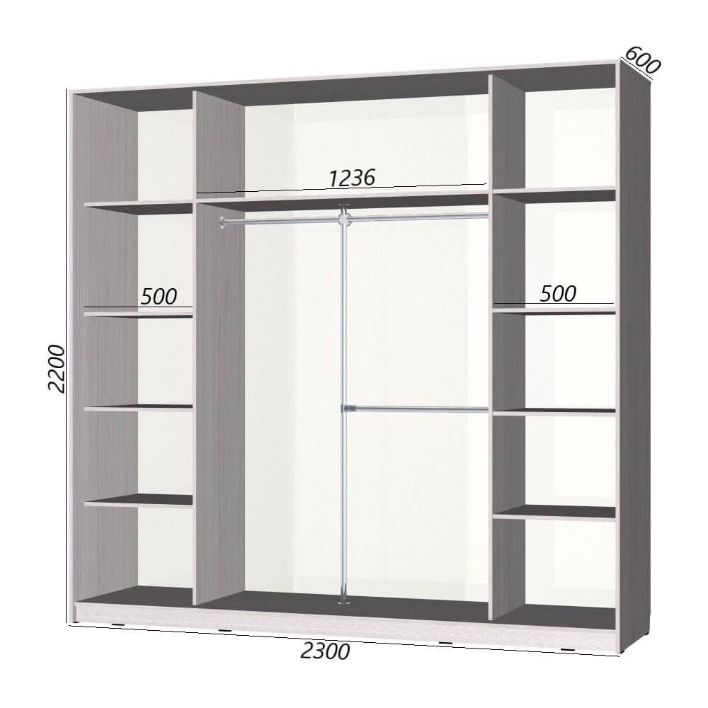 Шкаф-купе серии «Старт» 2300 - это отличная модель для огромного женского или семейного гардероба. Она славится эргономикой, надежностью исполнения, прочна и удобна в использовании.