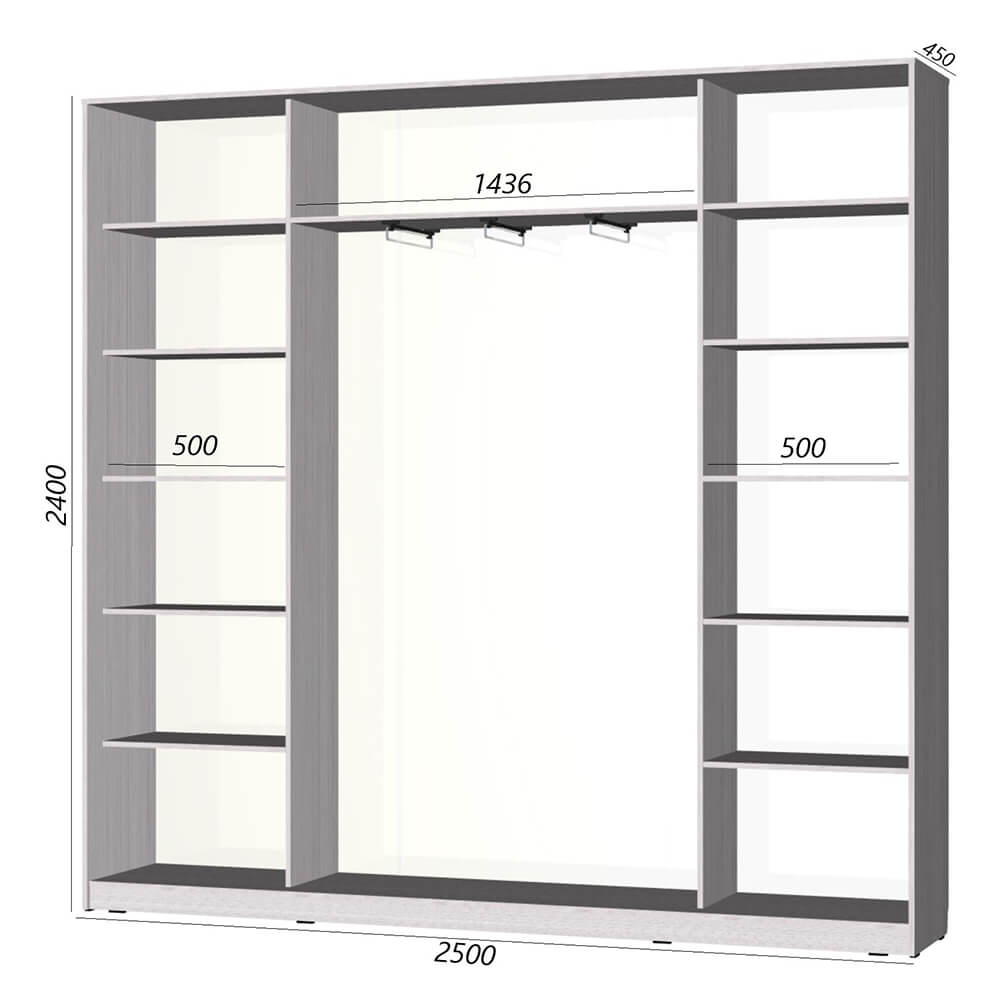 Шкаф-купе серии «Старт» 2500 - подойдет даже самой активной моднице, или же семейству из нескольких человек. Его длина 2,5 метра! Благодаря продуманной конструкции внутреннего наполнения сюда поместиться больше по сравнению с аналогичными конструкциями.